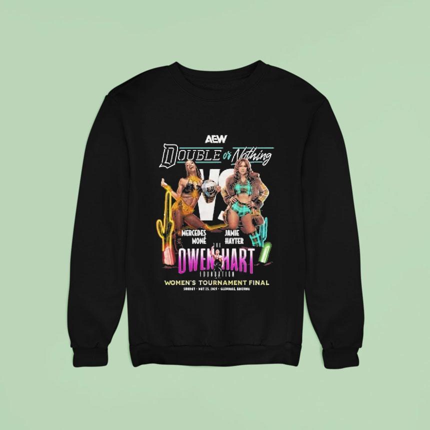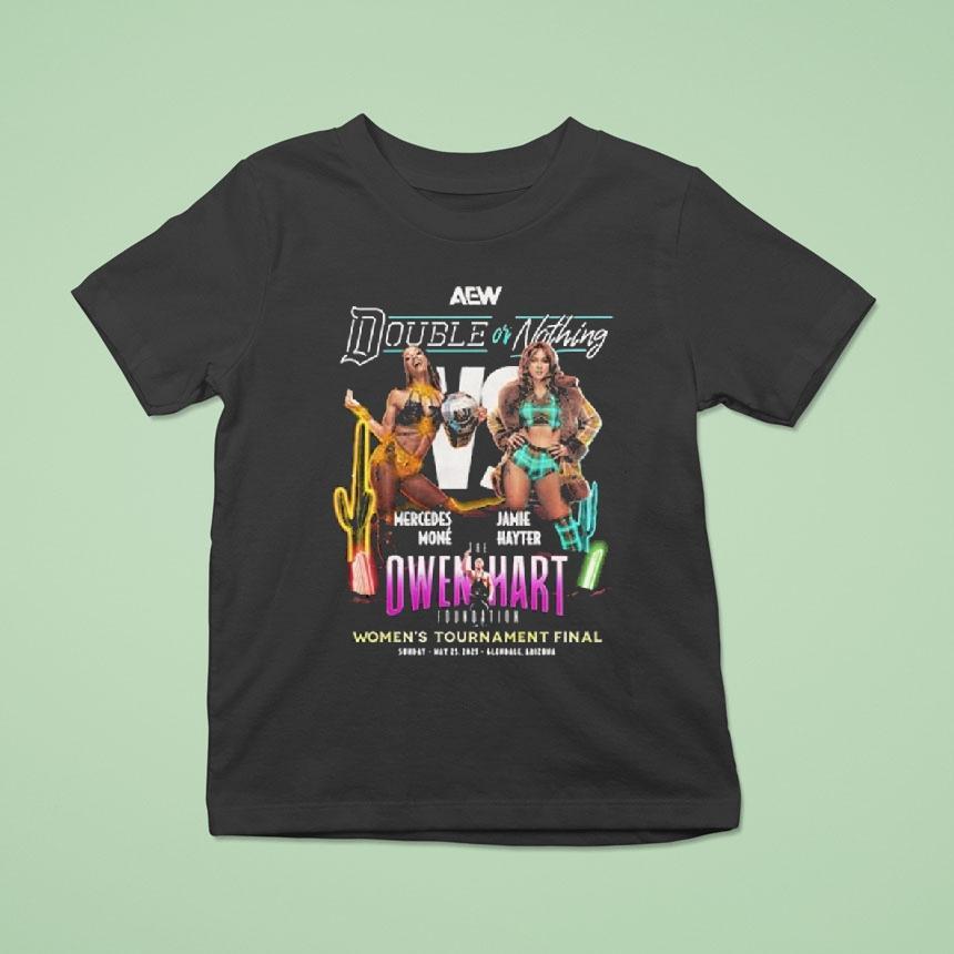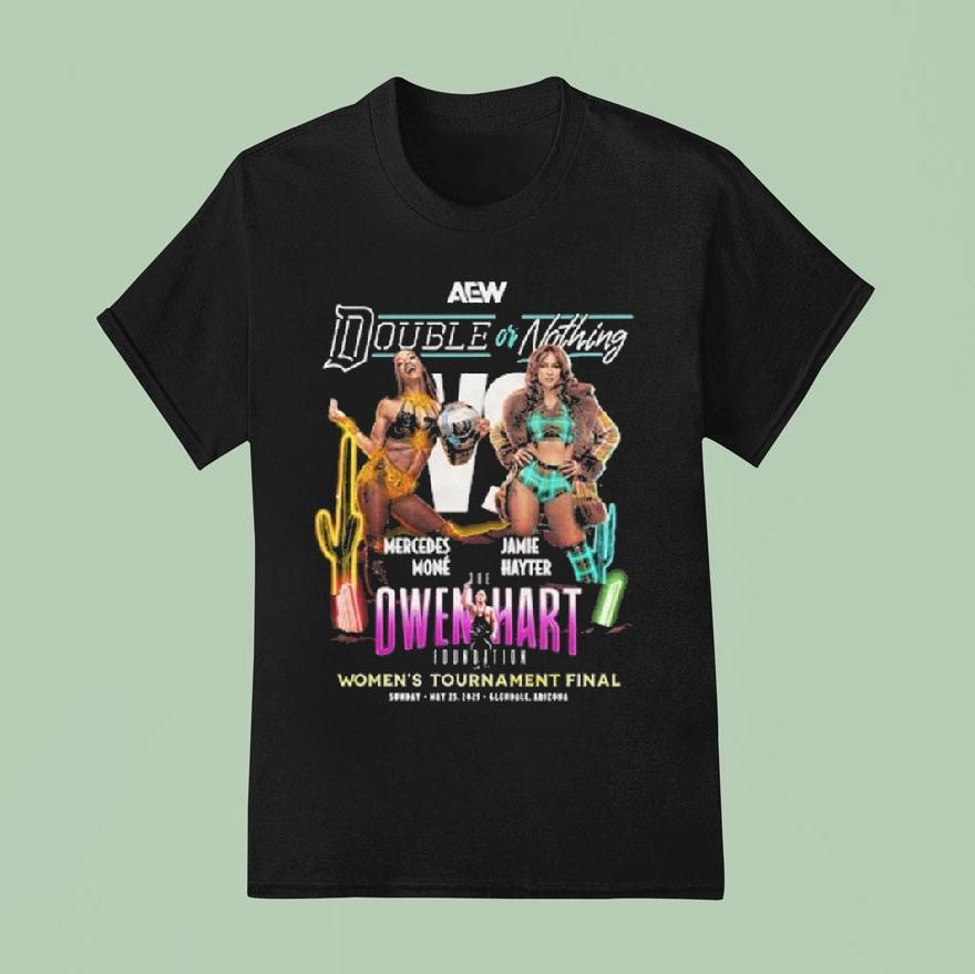 Your fashion canvas with Aew Double Or Nothing 2025 Mercedes Mon Vs Jamie Hayter Owen Hart Women’s Tournament Final May 29, 2025 Shirt, the highly anticipated AEW Double or Nothing 2025 event is just around the corner, and fans are eagerly awaiting the Mercedes Mon vs. Jamie Hayter showdown in the final of the Owen Hart Women’s Tournament on May 29th. Don’t miss out on the action and grab your commemorative shirt now!