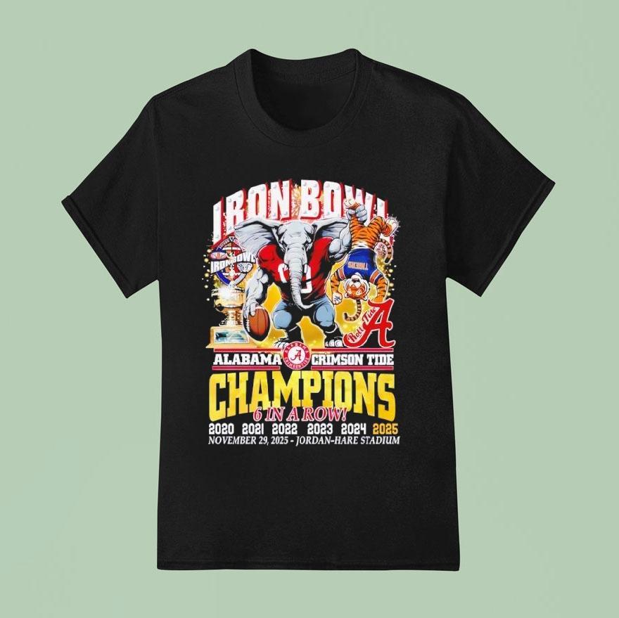 Your go-to casual choice with Alabama Crimson Tide 6 In A Row Iron Bowl Champions 2025 Shirt, get ready to show off your Alabama Crimson Tide spirit with the ultimate fan gear – the Alabama Crimson Tide 6 In A Row Iron Bowl Champions 2025 Shirt. Celebrate the Tide’s dominance on the field with this must-have shirt for any die-hard fan.