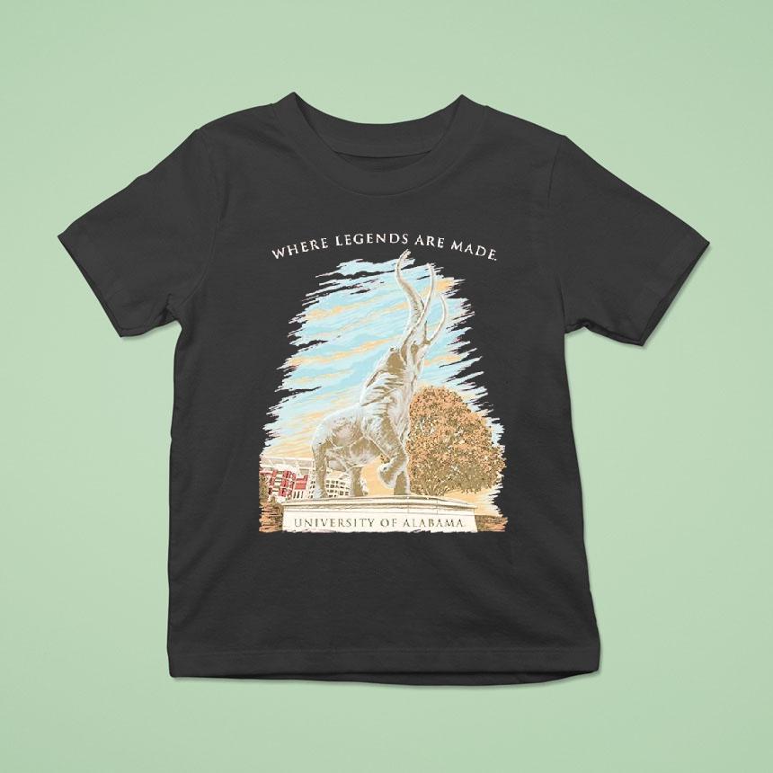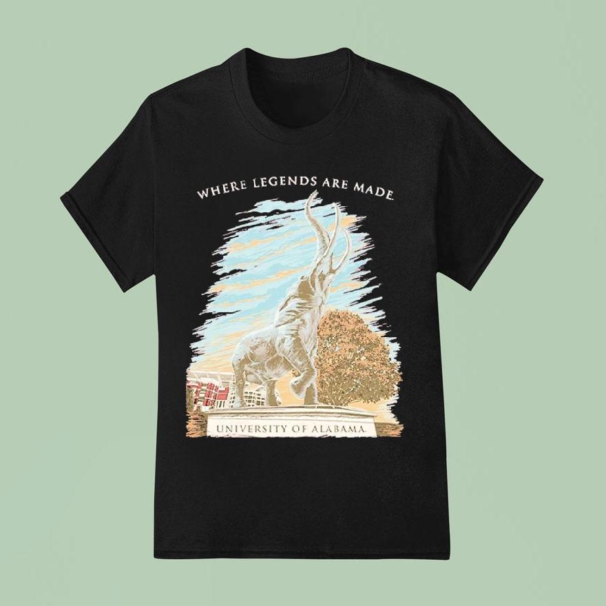 Casual flair, all occasions with Alabama Crimson Tide Tuska Statue Where Legends Are Made Shirt, celebrate your love for the Alabama Crimson Tide with the iconic Tuska Statue Where Legends Are Made shirt! This officially licensed shirt features the powerful tusks of the beloved mascot and is a must-have for any die-hard fan. Show off your team pride and roll with the Tide!