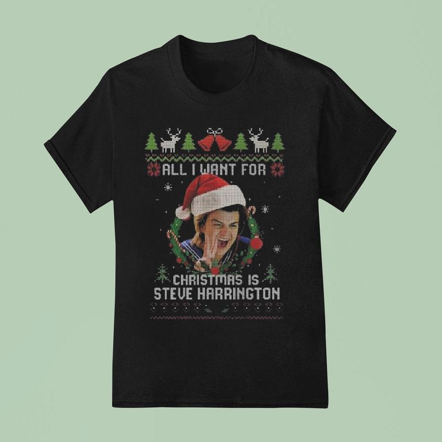 Everyday ease, endless style with All I Want For Christmas Is Steve Harrington Shirt, the holiday season is upon us and with it comes the search for the perfect gifts. This year, all I want for Christmas is a Steve Harrington shirt. As a die-hard fan of Stranger Things, this piece of merchandise would make my holiday dreams come true.