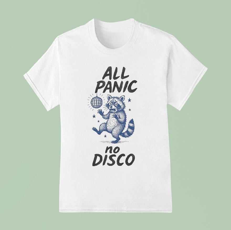Versatile style, always chic with All Panic No Disco Raccoon Shirt, get ready to rock the night away with the coolest shirt around – the All Panic No Disco Raccoon Shirt. With its eye-catching design and comfortable fit, this shirt will make you the life of the party. So grab yours now and let the panic and disco begin!