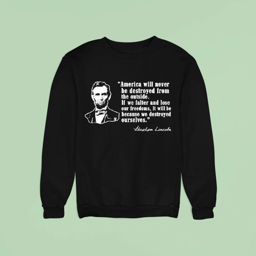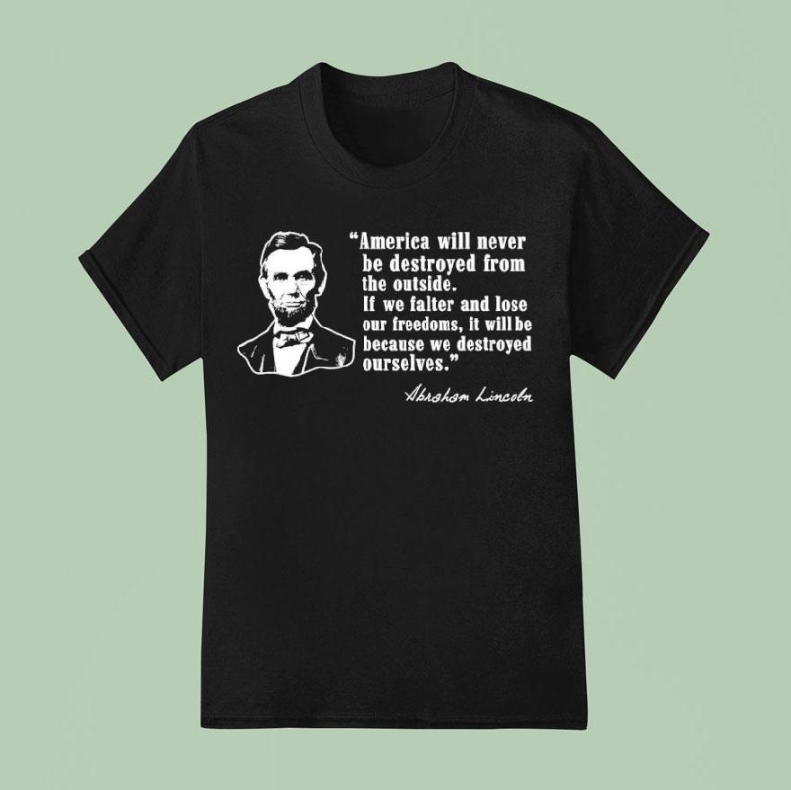 Wardrobe essential, always chic with America Will Never Be Destroyed From The Outside If We Falter And Lose Our Freedoms Abraham Lincoln Shirt, as Abraham Lincoln famously said, “America will never be destroyed from the outside if we falter and lose our freedoms.” Show your patriotic pride and support for our nation with the America Will Never Be Destroyed From The Outside If We Falter And Lose Our Freedoms Abraham Lincoln shirt.