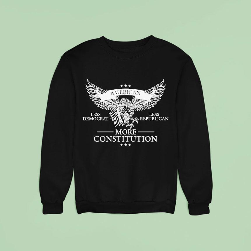 Effortless fashion update with American Less Democrat, Less Republican More Constitution Eagle Shirt, proudly display your patriotic values with our American “Less Democrat, Less Republican, More Constitution” Eagle shirt. Designed to unite instead of divide, this shirt features a majestic eagle, symbolizing the strength and unity of our nation. Perfect for anyone who believes in the power of the Constitution.