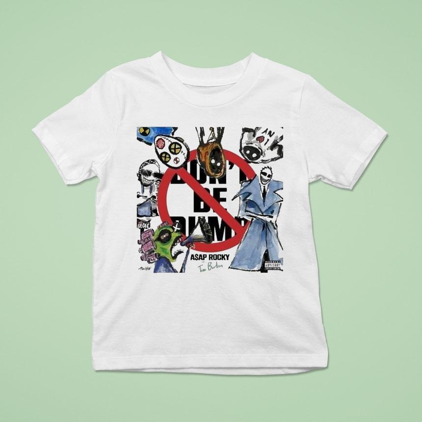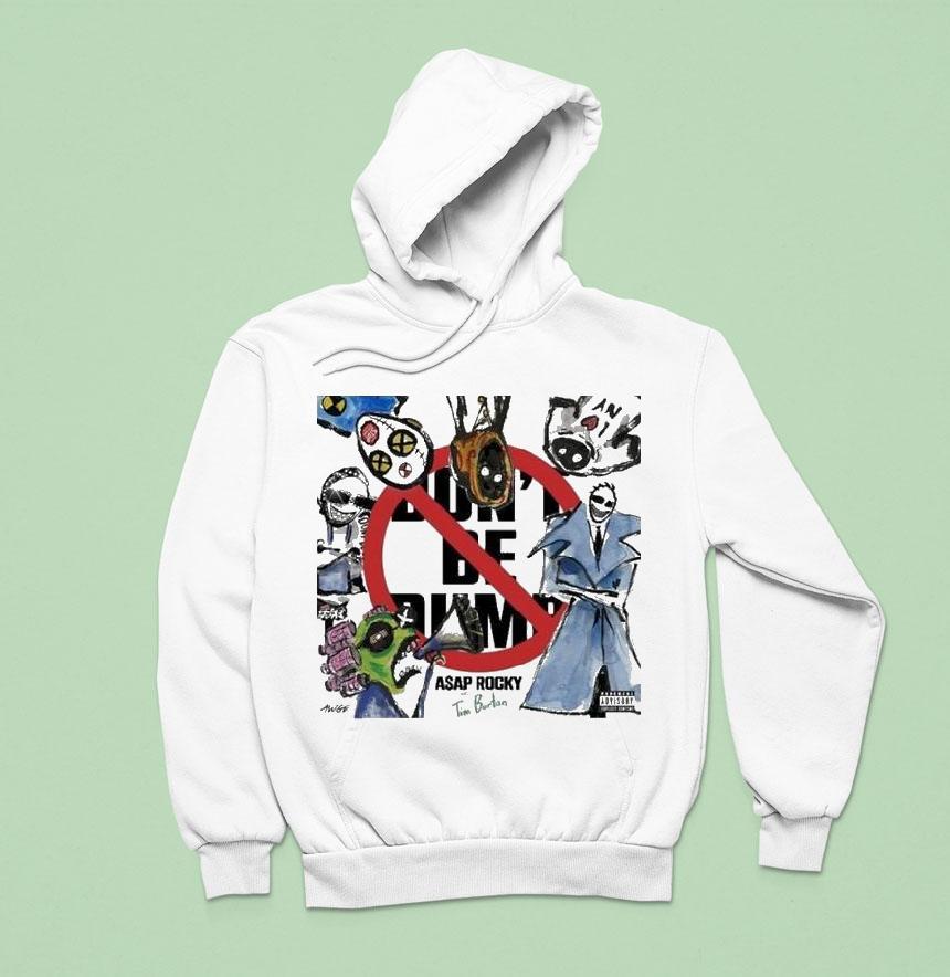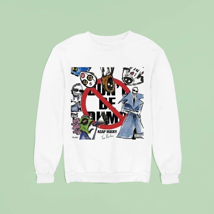Instant style upgrade with Asap Rocky X Tim Burton Don’t Be Dumb Shirt, get ready to turn heads and make a statement with the ultimate collaboration between music icon ASAP Rocky and renowned filmmaker Tim Burton. The Asap Rocky X Tim Burton “Don’t Be Dumb” shirt combines bold graphics with edgy style for a must-have addition to your wardrobe.