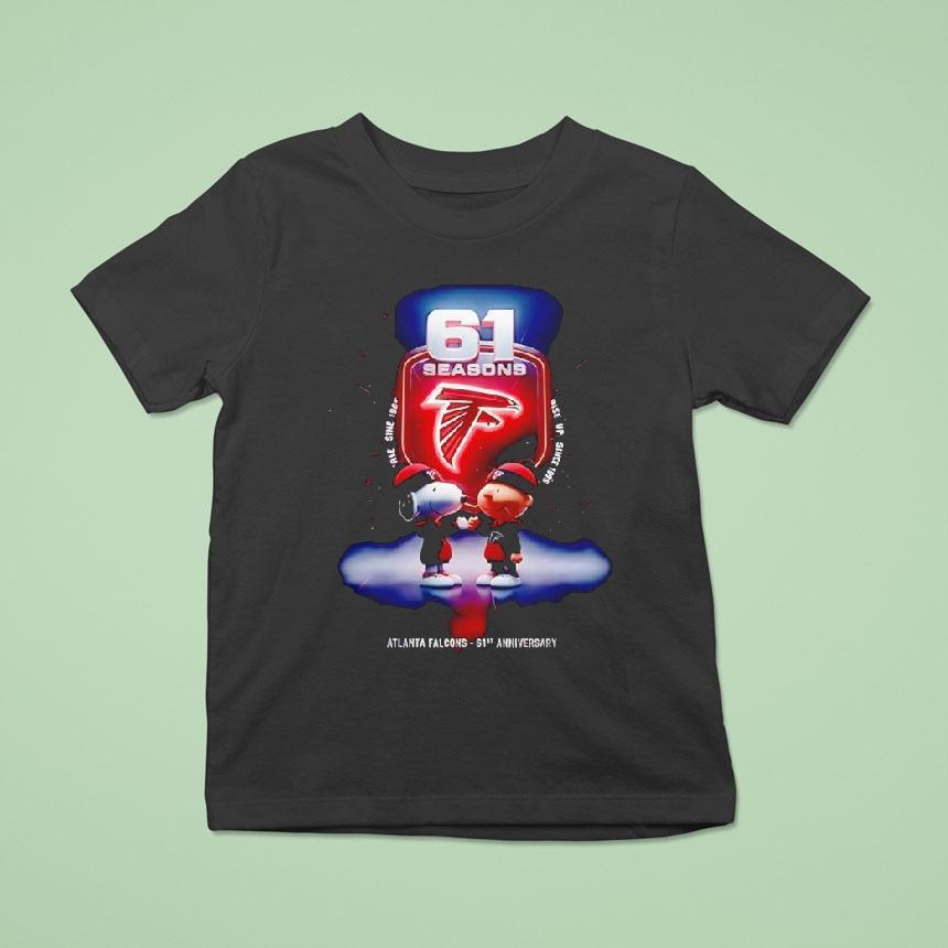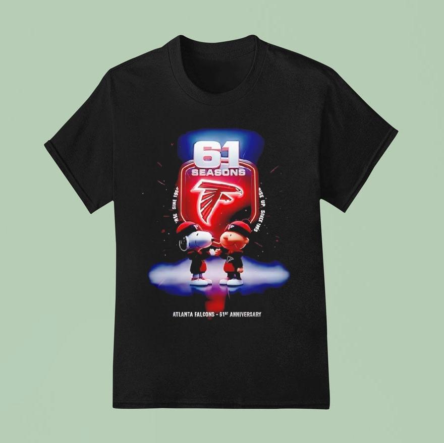 Your go-to casual choice with Atlanta Falcons Charlie Brown And Snoopy 61 Seasons Anniversary Shirt, as the Atlanta Falcons celebrate their 61st season in the NFL, fans are also commemorating the iconic duo of Charlie Brown and Snoopy with a special anniversary shirt. This unique design pays tribute to the beloved cartoon characters who have captured the hearts of fans for decades.