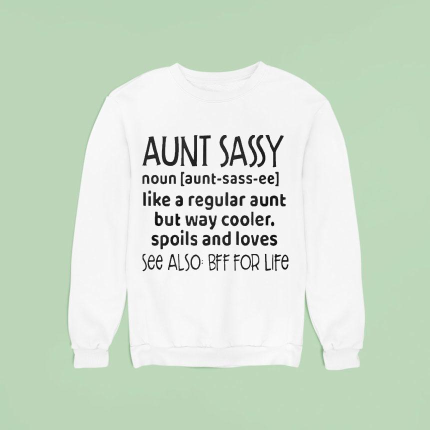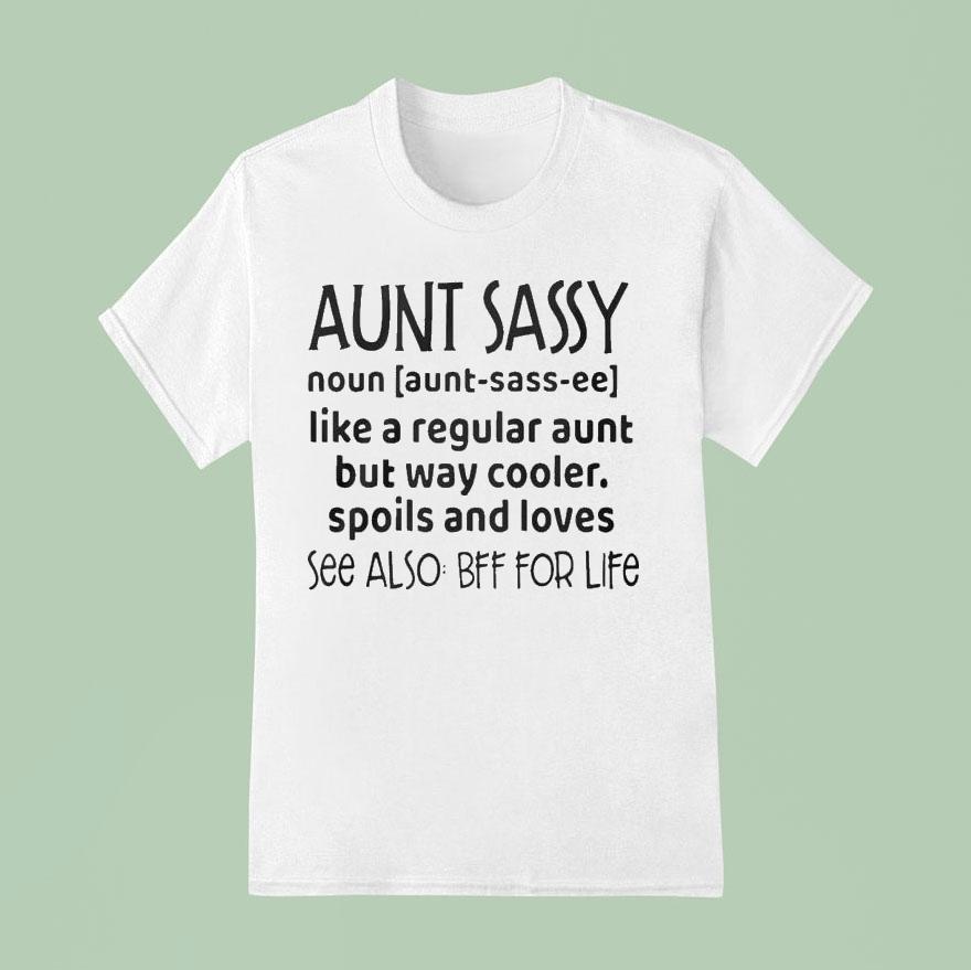 Casual elegance, always with Aunt Sassy Noun Like A Regular Aunt But Way Cooler Spoils And Loves See Also Bff For Life Shirt, introducing Aunt Sassy – the ultimate cool aunt! She’s more than just your regular aunt, she spoils and loves like no other. And just like a BFF for life, she’s always there for you. Get ready to show off your love for her with the “See Also BFF for Life” shirt!