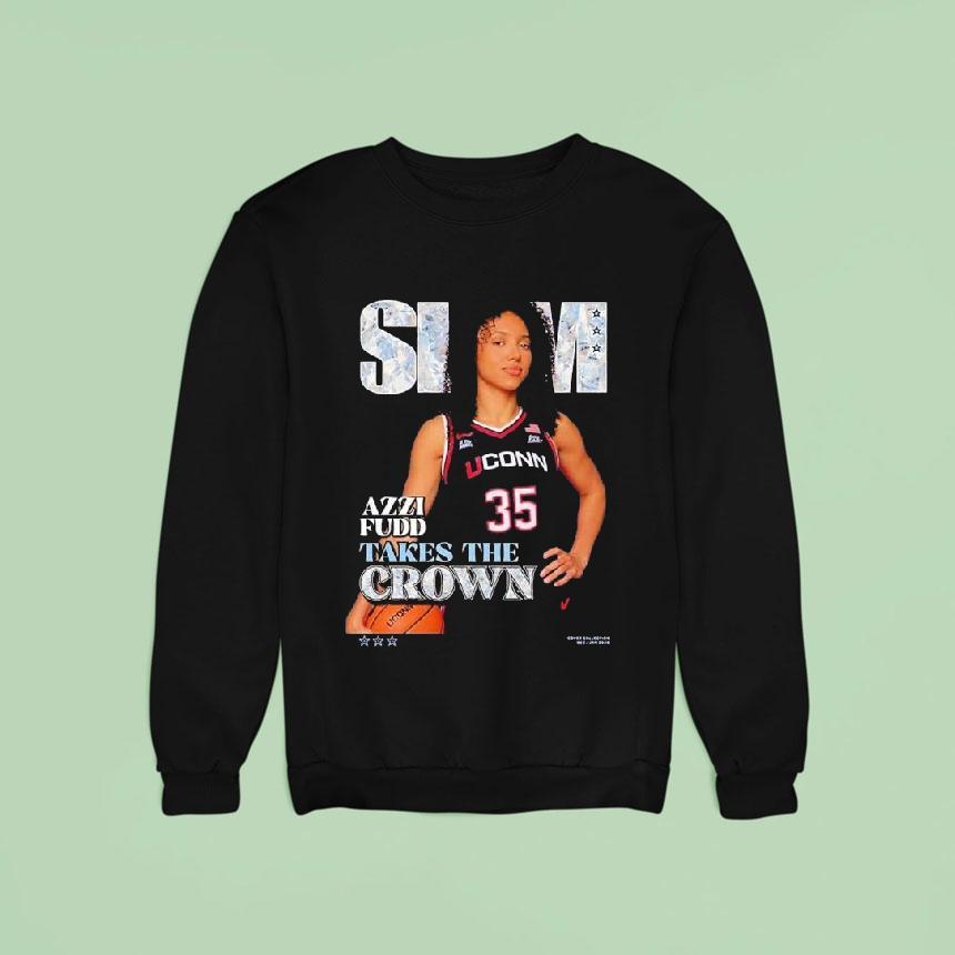 Effortless, everyday style with Azzi Fudd Takes The Crown Remix Slam Uconn Huskies Shirt, get ready to rock the court and show off your love for Uconn Huskies with the all-new Azzi Fudd Takes The Crown Remix Slam Shirt. With a fierce design and comfortable fit, this shirt is a must-have for any fan of the legendary Azzi Fudd and the Uconn Huskies.