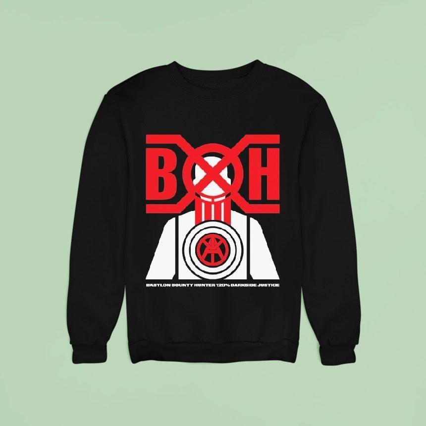 Classic charm, modern comfort with Babylon X Bounty Hunter 120% Darkside Justice Shirt, welcome to the world of Babylon X, where the law of the streets is enforced by the ruthless Bounty Hunter. With the new 120% Darkside Justice Shirt, the Hunter is ready to take on any challenge and deliver justice to those who dare to cross the line. Step into the darkness and embrace the power of Babylon X.