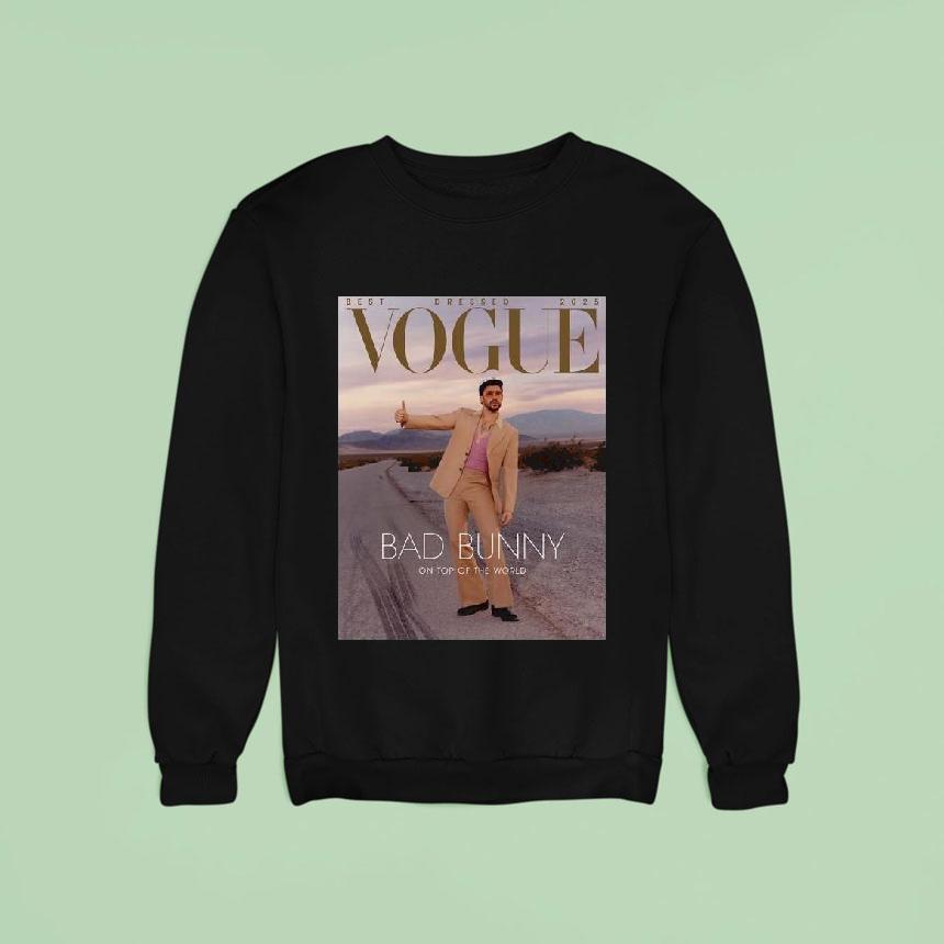 Your comfort, your style with Bad Bunny Graces The Cover Of Vogue Magazine Best Dressed 2025 On Top Of The World Shirt, step into the future of fashion as Bad Bunny stuns on the cover of Vogue Magazine’s 2025 Best Dressed edition, sporting a stylish “On Top Of The World” shirt. Get ready to be amazed by the evolution of this Latin trap artist and his impeccable sense of style.