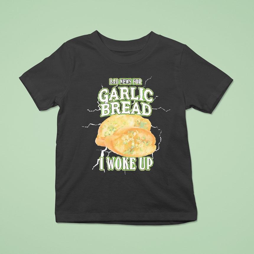 Timeless fashion, cozy fit with Bad News For Garlic Bread I Woke Up Shirt, attention all garlic bread lovers, brace yourselves for some bad news. The beloved and witty “I Woke Up Shirt” featuring everyone’s favorite carb-loaded treat is facing production issues. Garlic bread fans will have to find a new way to proudly proclaim their love for the savory goodness.