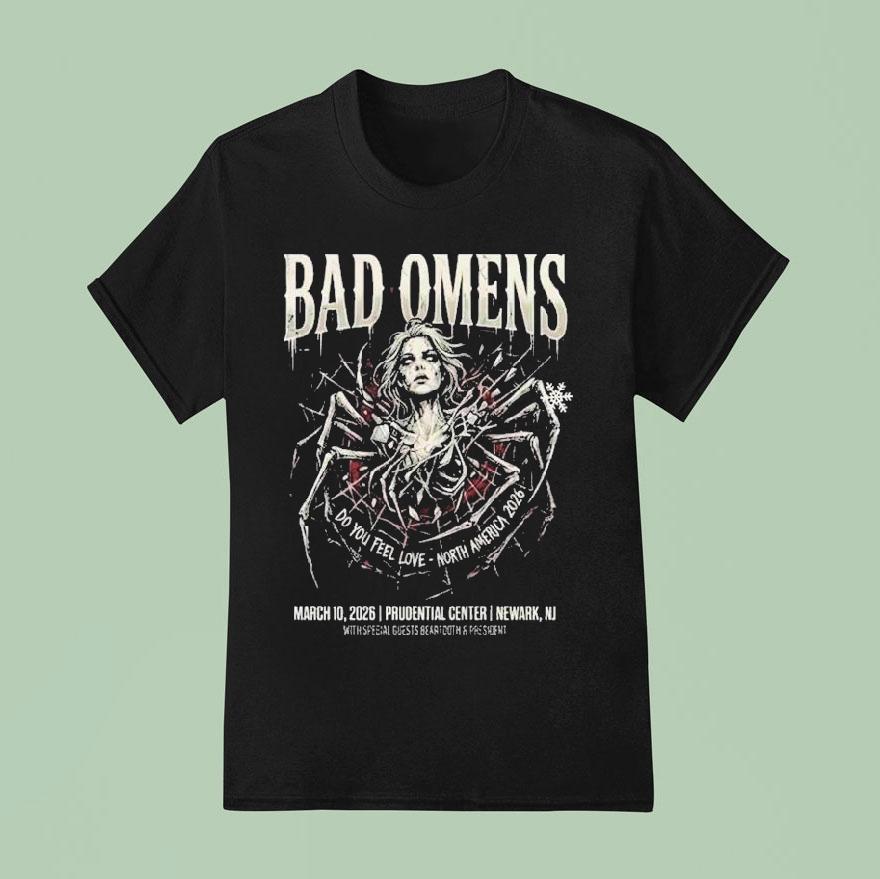 Effortless fashion, endless comfort with Bad Omens Do You Feel Love North America Event At Prudential Center On March 10 2026 Newark Nj Spider Shirt, “Unleash your inner rocker at the Bad Omens Do You Feel Love North America event on March 10, 2026 at the Prudential Center in Newark, NJ. Get ready to jam out to their infectious tunes while showing off your love for the band with their exclusive Spider Shirt.”