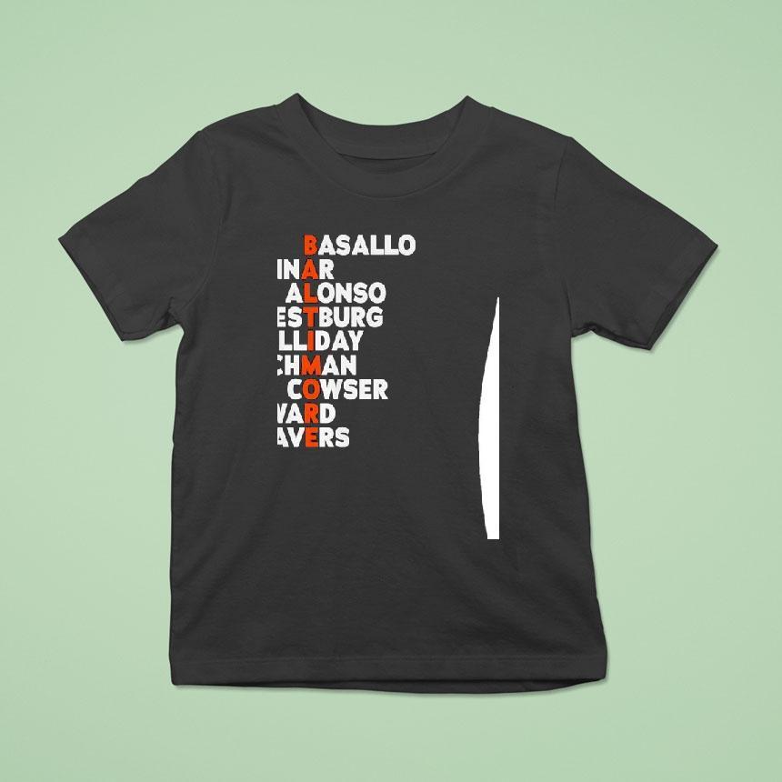 Versatile, stylish simplicity with Baltimore Orioles Basallo Gunnar Alonso Westburg Holliday Rutschman Cowser Ward Beavers Shirt, the Baltimore Orioles are ready to take on the field with their star players Basallo, Gunnar, Alonso, and Westburg. With the help of Holliday, Rutschman, Cowser, Ward, Beavers, and their infamous orange and black shirts, they are sure to dominate the competition and make their fans proud.