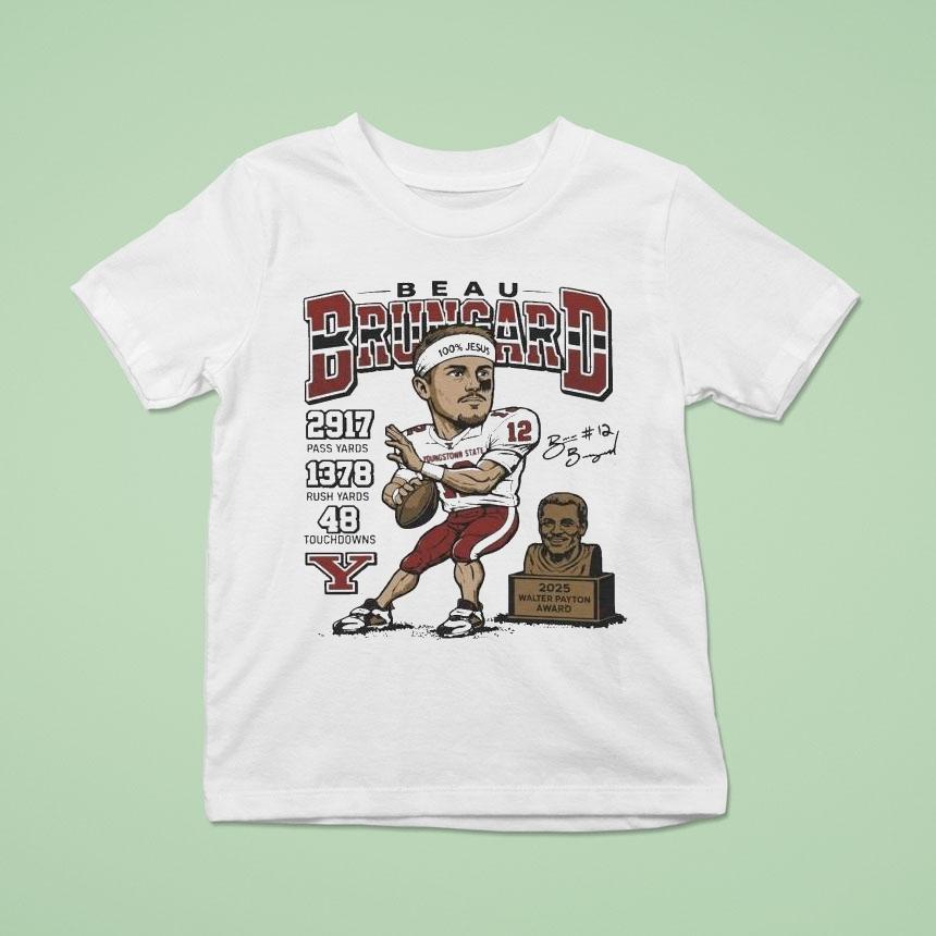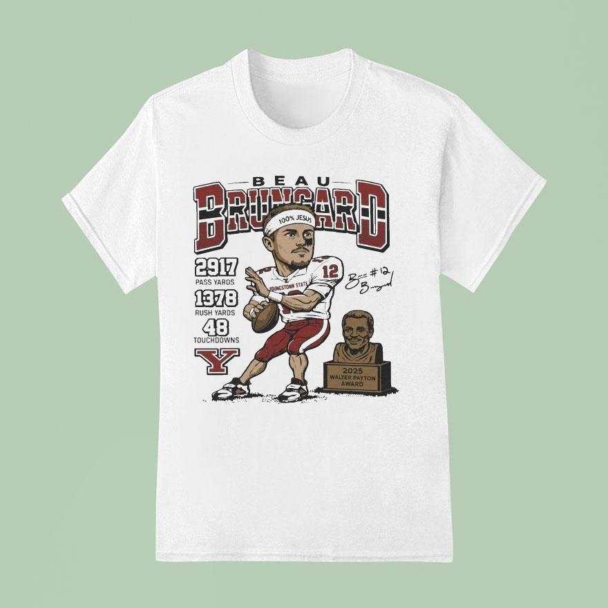 Chic comfort, everyday fashion with Beau Brungard 2025 Walter Payton Award Winner Youngstown State Penguins Trophy Shirt,