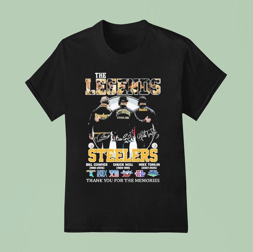 Soft, breathable, and stylish with Bill Cowher Chuck Noll Mike Tomlin Pittsburgh Slers The Legends Thank You For The Memories Signatures Shirt, the Pittsburgh Steelers have a rich history and legacy, thanks to the contributions of legendary coaches Bill Cowher, Chuck Noll, and Mike Tomlin. Their impact on the team and the city will forever be remembered, and fans can show their appreciation with the iconic “Thank You For The Memories” signatures shirt.