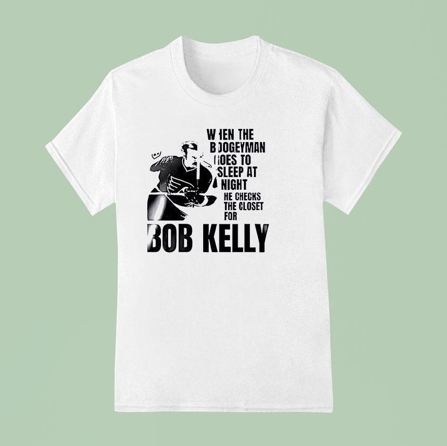 Effortless, everyday style with Bob Kelly Philadelphia Flyers When The Boogeyman Goes To Sleep At Night Shirt, “Philadelphia Flyers fans know Bob Kelly as one of the toughest players to ever don the orange and black jersey. And now, they can show their love for this legendary enforcer with the exclusive “When The Boogeyman Goes To Sleep At Night” shirt. Represent the Flyers with pride!”