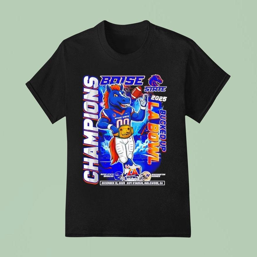 Effortless style, pure simplicity with Boise State Broncos And Washington Huskies Bucked Up La Bowl Champions 2025 Shirt, get ready to show your support for the Boise State Broncos and Washington Huskies with the official Bucked Up La Bowl Champions 2025 shirt! These fierce teams battled it out for the title and now you can wear their victory proudly. Don’t miss out on this limited edition shirt.