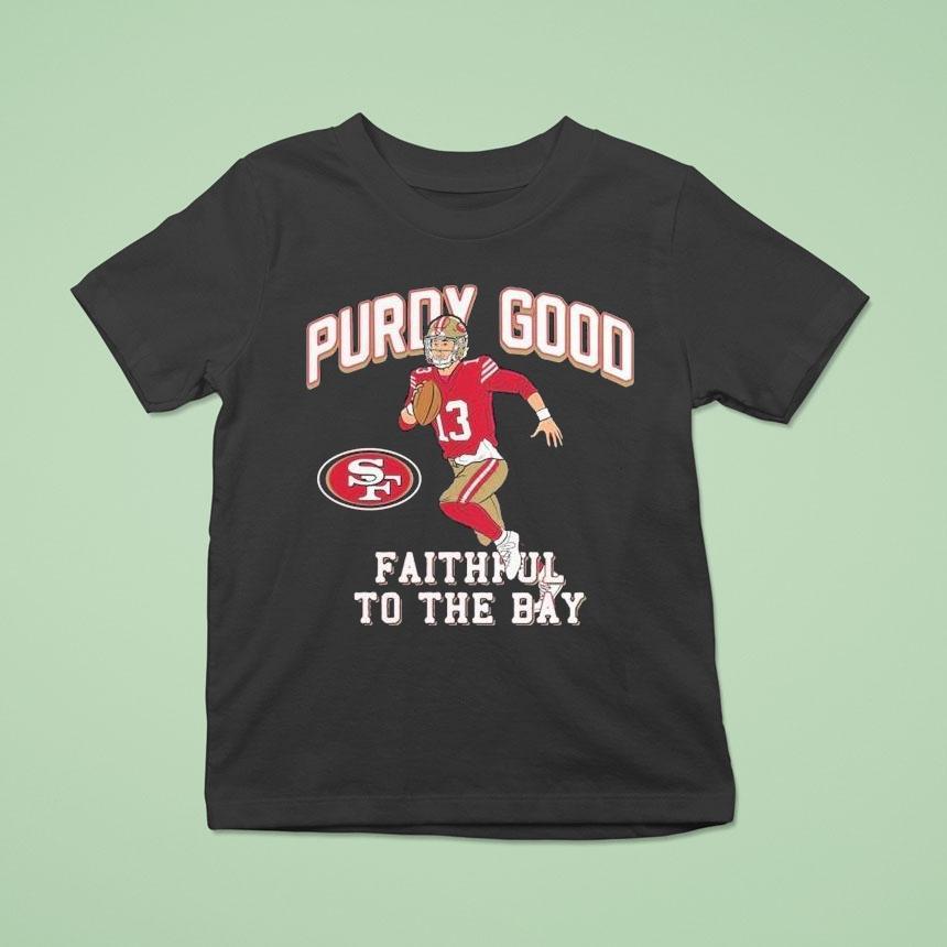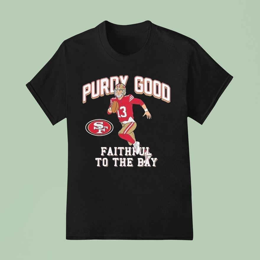 Effortless charm, everyday wear with Brock Purdy Good Faithful To The Bay San Francisco 49ers Player Shirt, introducing the must-have shirt for all San Francisco 49ers fans – the Brock Purdy Good Faithful To The Bay shirt! Show your support for the talented quarterback and his unwavering loyalty to the team with this stylish and comfortable shirt. Grab yours today and join the faithful!