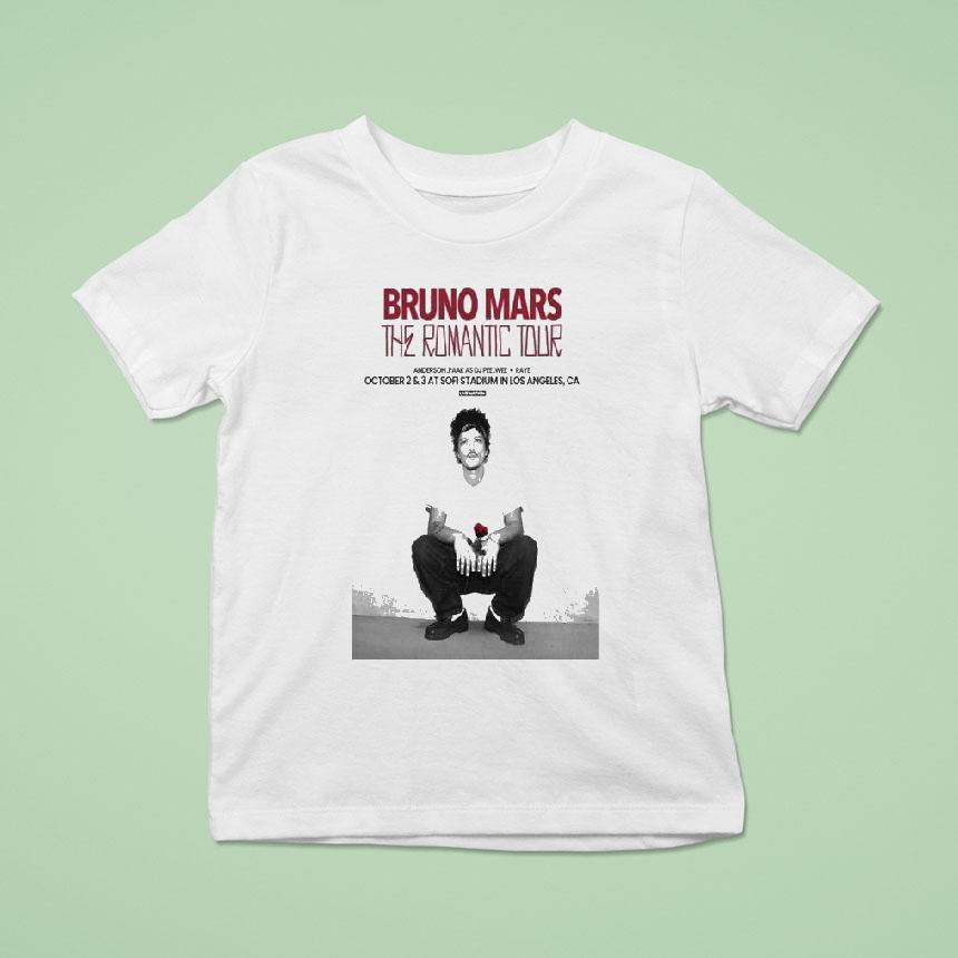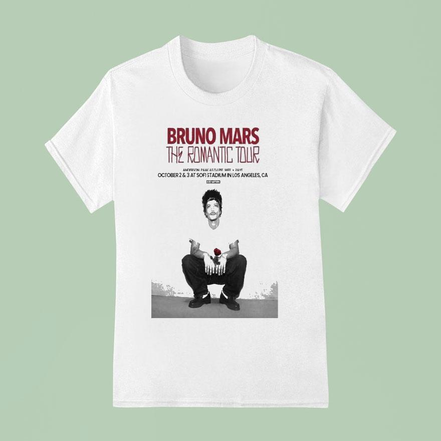 Relaxed elegance, anytime with Bruno Mars Sofi Stadium Los Angeles Ca The Romantic Tour 2026 Shirt, “Get ready to dance the night away with Bruno Mars at Sofi Stadium in Los Angeles, CA for his highly anticipated Romantic Tour in 2026. Show off your love for the Grammy-winning artist with the stylish and commemorative tour shirt. Don’t miss out on this unforgettable concert experience!”
