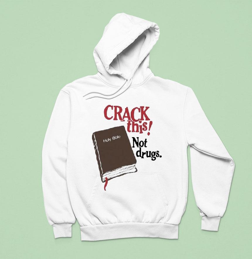 Wear it well, wear it often with Bryce Crawford Crack This! Not Drugs Holy Bible Shirt, are you ready to ditch drugs and embrace faith? Look no further than Bryce Crawford’s “Crack This! Not Drugs” Holy Bible shirt. This eye-catching design is a powerful reminder to reject harmful substances and choose a higher path. Join the movement today with this must-have shirt.