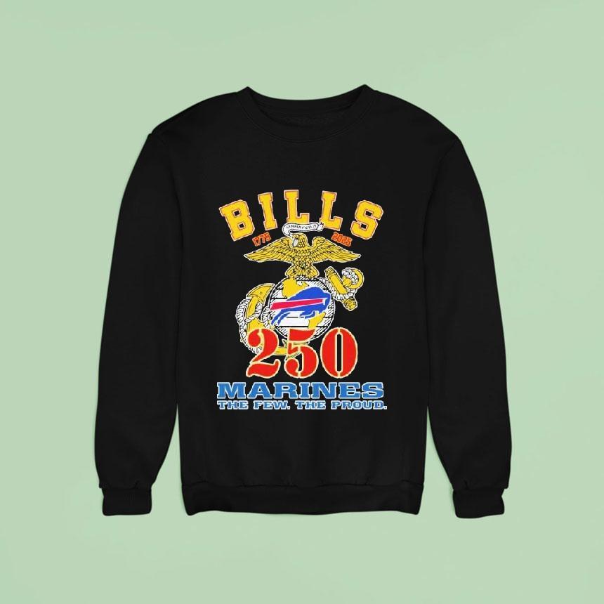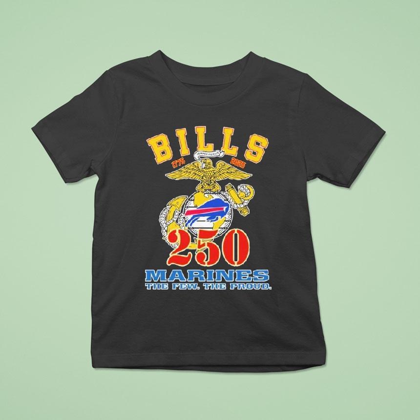 Versatile fashion, timeless appeal with Buffalo Bills 250 Marines The Few The Proud 1775 2025 Shirt, the Buffalo Bills have always been a team that embodies strength, determination and the spirit of the city. And now, they have partnered with the U.S. Marine Corps to create a limited edition shirt, honoring the brave men and women of the “Few, the Proud” who have served since 1775 and will continue to serve until 2025. Get your hands on this exclusive piece and show your support for the Bills and the Marines.