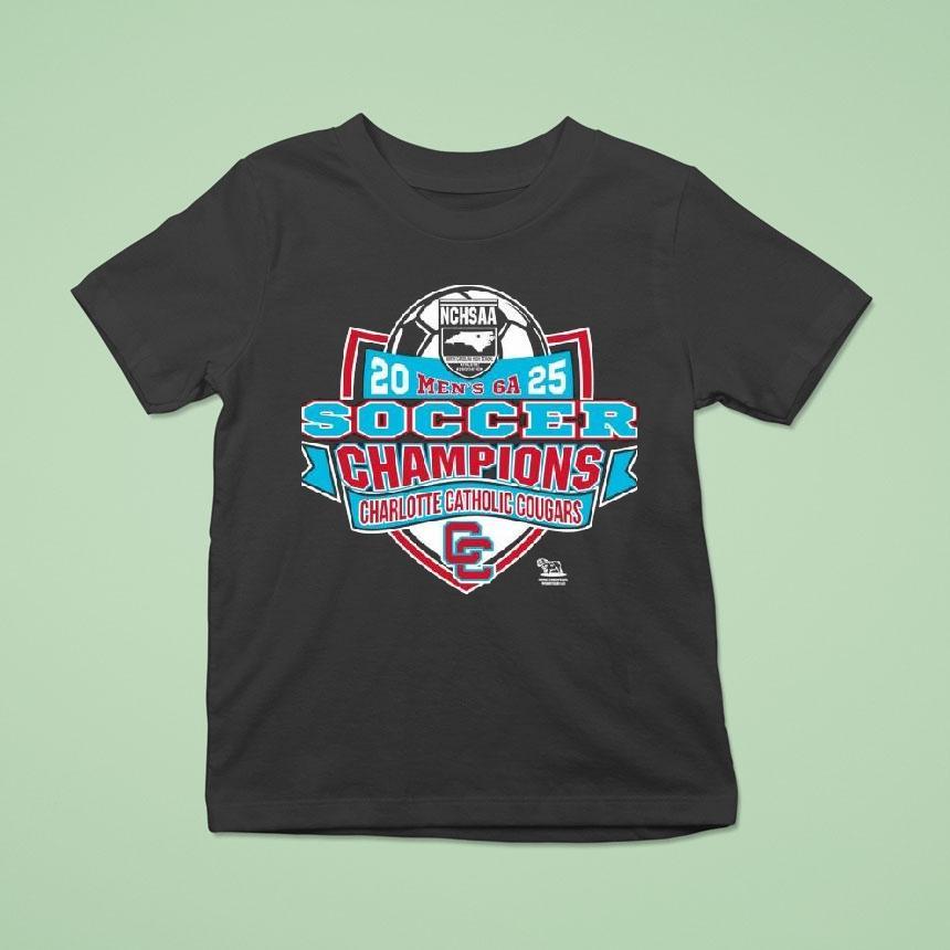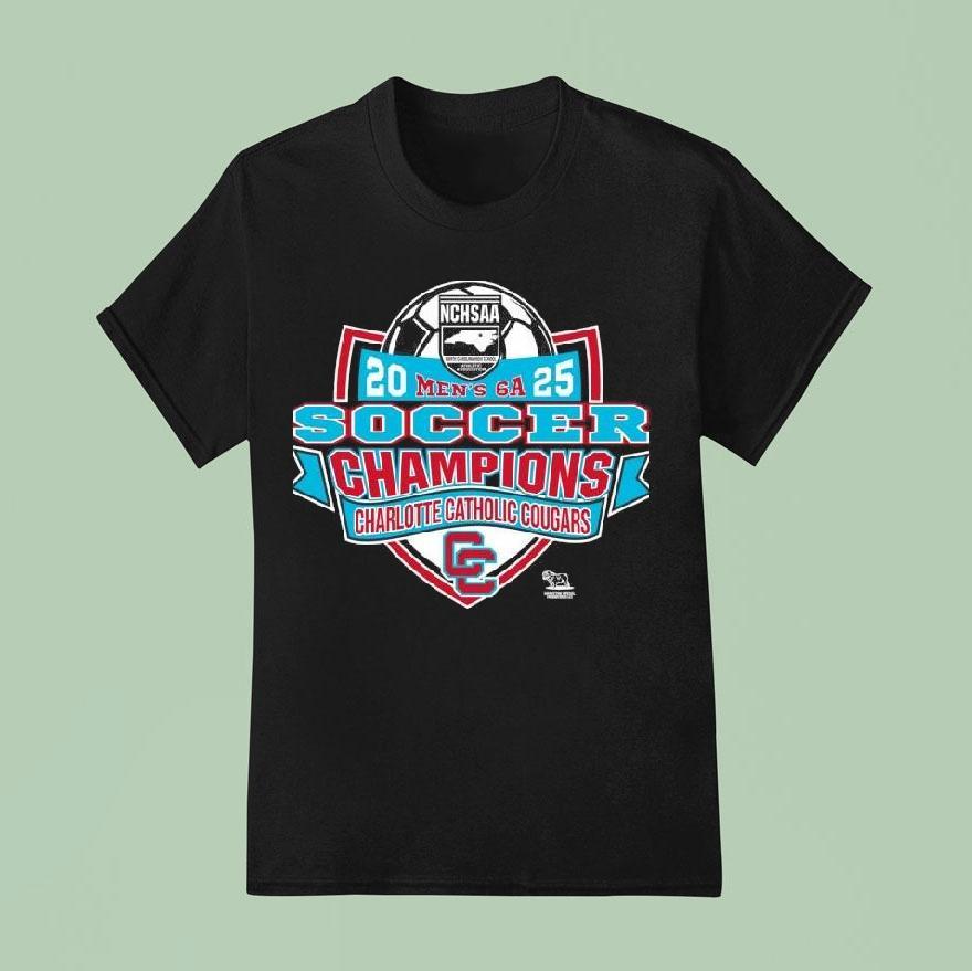 Casual cool, anytime chic with Charlotte Catholic Cougars Nchsaa Men’s 6a 2025 Soccer Division Champions Shirt, the Charlotte Catholic Cougars have done it again, proving themselves as soccer powerhouses by clinching the NC High School Athletic Association (NCHSAA) Men’s 6A 2025 Soccer Division Championship title. Show your support for these champions with the official championship shirt!