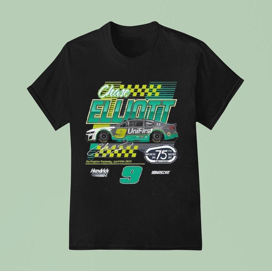 Uncomplicated style choice with Chase Elliott Hendrick Motorsports Team Unifirst Darlington Throwback Car Shirt, get ready to rev your engines and show off your NASCAR spirit with the Chase Elliott Hendrick Motorsports Team Unifirst Darlington Throwback Car Shirt. This retro-inspired shirt pays tribute to Elliott’s #9 car and showcases the history and success of Hendrick Motorsports.