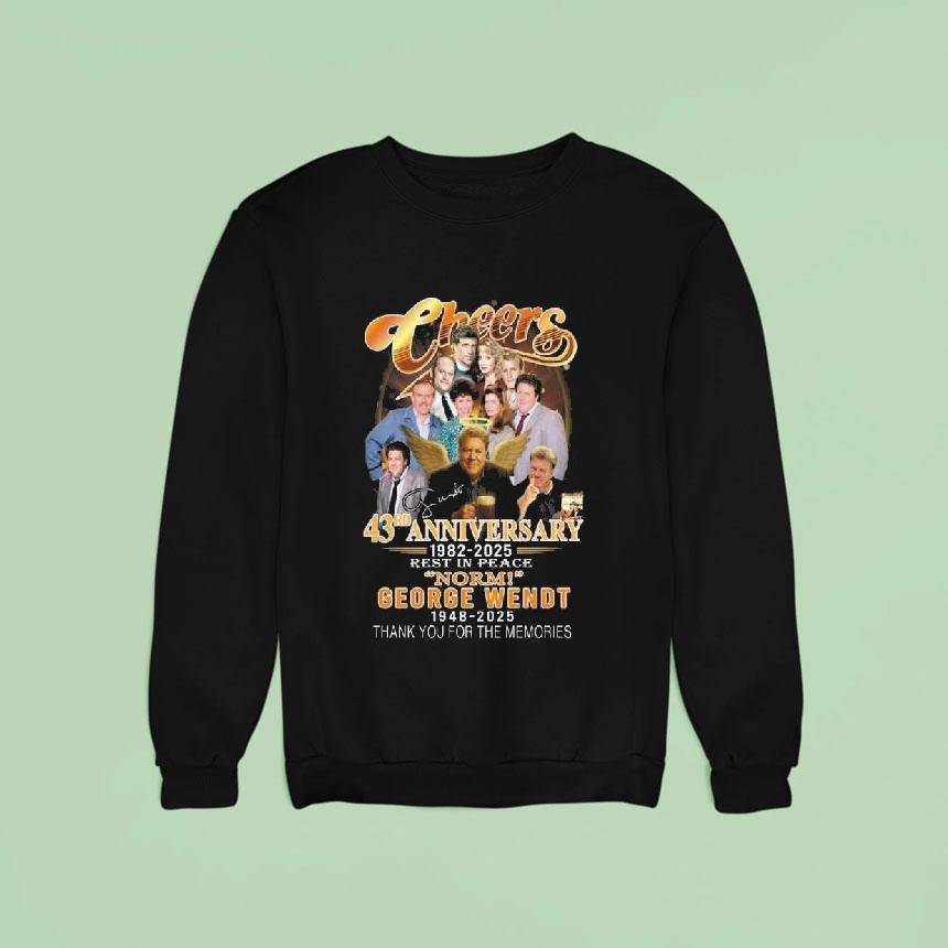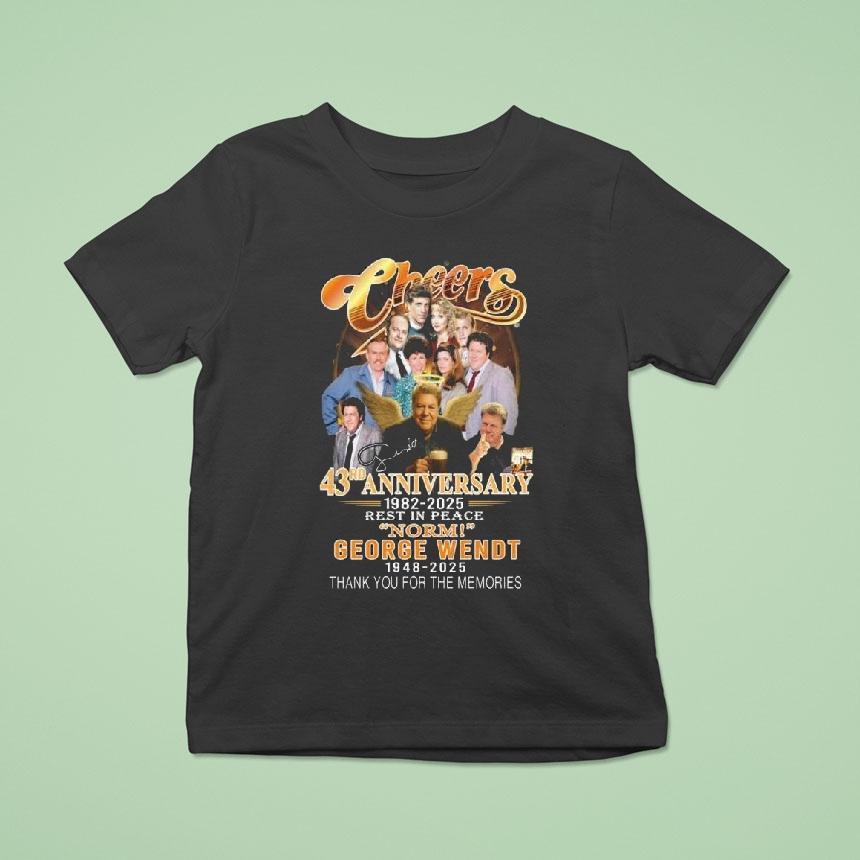 Chic simplicity, everyday charm with Cheers 43rd Anniversary 1982-2025 Rest In Peace Norm George Wendt 1948-2025 Thank You For The Memories Signature Shirt, “Cheers to 43 years of laughs, love, and endless cheers as we celebrate the 43rd anniversary of the beloved show, Cheers. We also remember and honor the late Norm George Wendt, who will forever be a part of our memories. Thank you for the laughs and cheers, Norm. Rest in peace.”