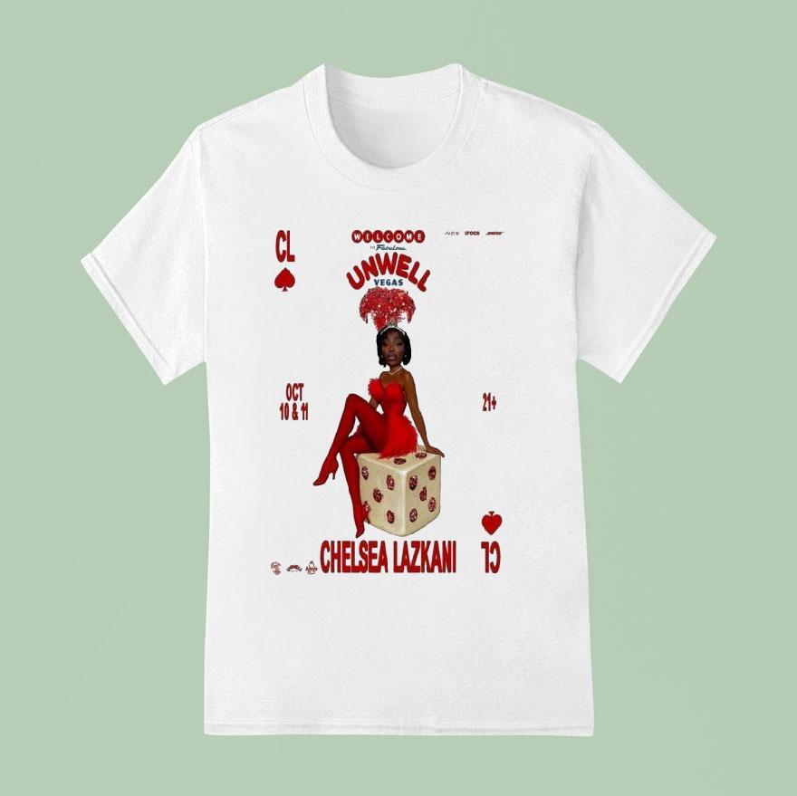 Instant style upgrade with Chelsea Lazkani Welcome To Fabulous Unwell Vegas Oct 10-11 2025 Shirt, get ready for the ultimate fashion statement as Chelsea Lazkani presents the Fabulous Unwell Vegas Oct 10-11 2025 shirt. This must-have piece is a perfect blend of glitz and glamour, featuring the iconic Vegas landscape. So join us on the fashion journey and be ready to turn heads with this exclusive shirt design.