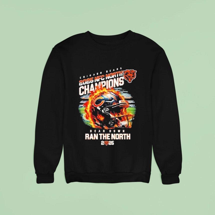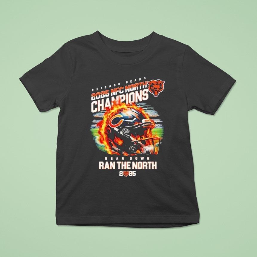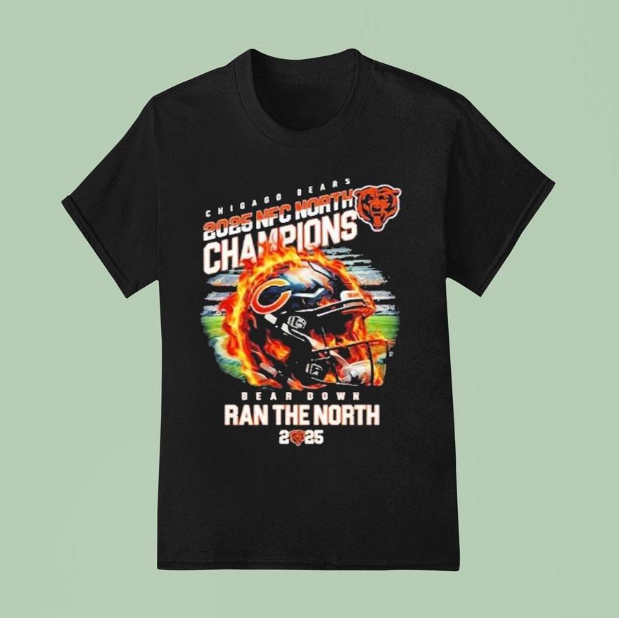 Casual elegance, always with Chicago Bears 2025 Nfc North Champions Bear Down Ran The North Helmet Flames Shirt, in the year 2025, the Chicago Bears roared their way to the top of the NFC North division, claiming the title of champions. With their iconic “Bear Down” battle cry, they dominated the field, igniting excitement among fans as they sported their signature helmet flames shirt.