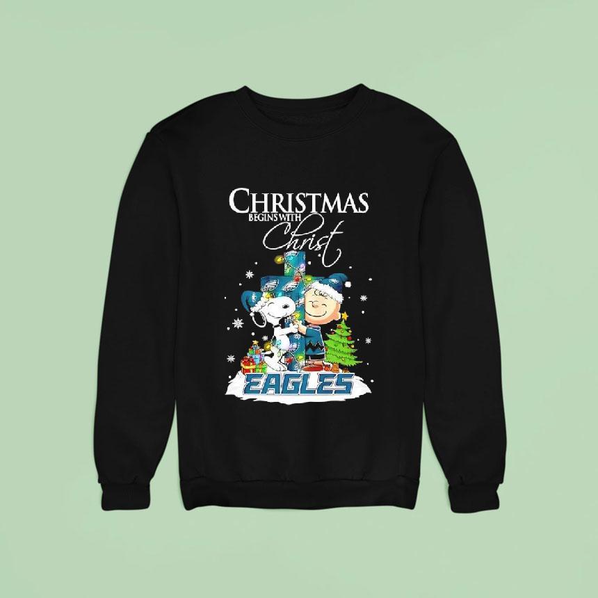 Elevate your casual wardrobe with Christmas Begins With Christ Philadelphia Eagles X Snoopy And Charlie Brown Shirt, as the holiday season approaches, the true meaning of Christmas is often forgotten amidst the hustle and bustle. However, the Philadelphia Eagles have teamed up with beloved characters Snoopy and Charlie Brown to remind us that Christmas truly begins with Christ. And what better way to spread this message than with a festive t-shirt?