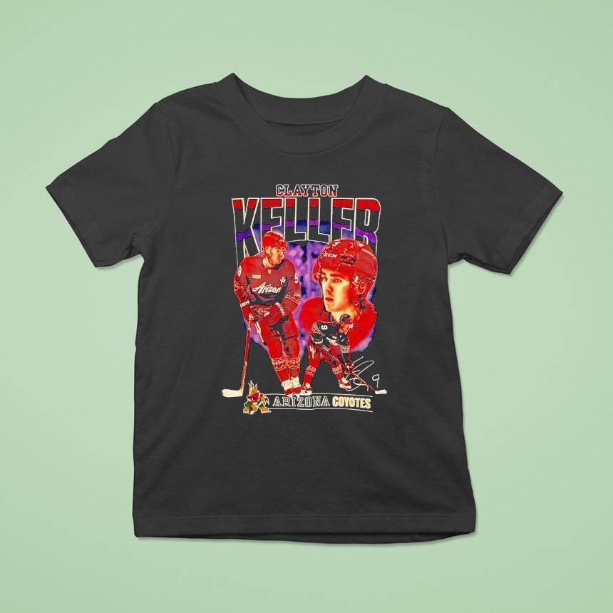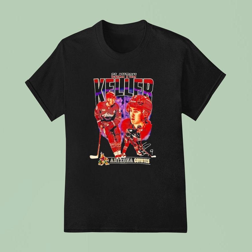Casual comfort, chic look with Clayton Keller Arizona Coyotes Hockey Signature Vintage Shirt, celebrate the legacy of Clayton Keller and the Arizona Coyotes with their signature vintage shirt. Made to honor the team’s history and Keller’s impact on the ice, this classic design is a must-have for any fan’s wardrobe. Show your support for the Coyotes and Keller with this timeless piece.