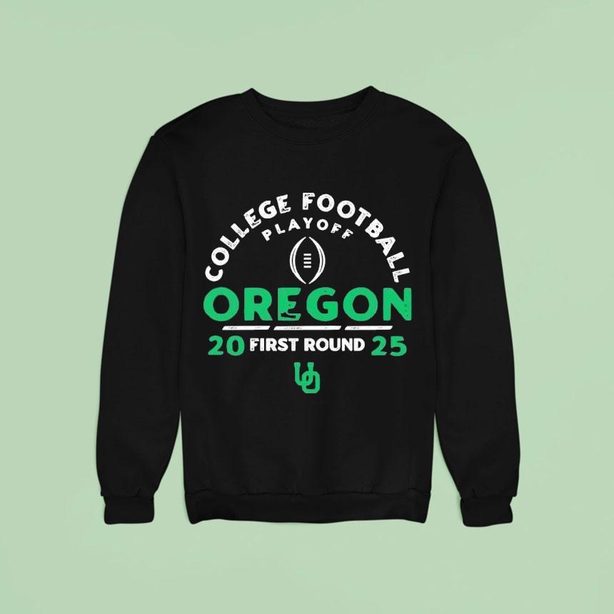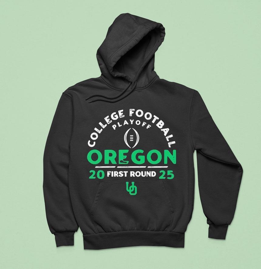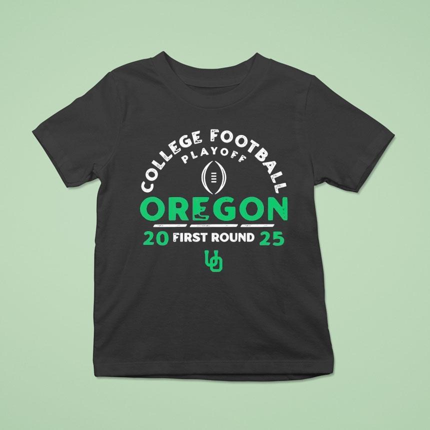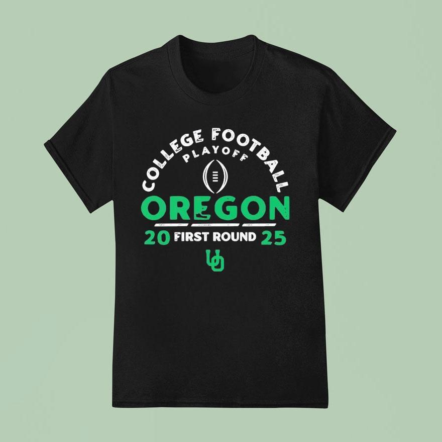 Wardrobe essential, always with College Football Playoff Oregon Ducks First Round 2025 Shirt, “Get ready, football fans! The Oregon Ducks are making a splash in the 2025 College Football Playoff with their first round appearance. Show your support for the team in style with the limited edition Oregon Ducks First Round 2025 playoff shirt. Don’t miss out on this must-have for any die-hard fan!”