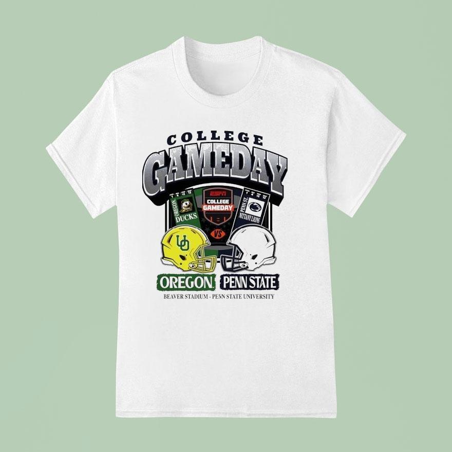 Dress it up, dress it down with College Gameday Oregon Ducks Vs Penn State Nittany Lions Football 2025 Shirt, kickoff the 2025 football season with the highly anticipated matchup between the Oregon Ducks and Penn State Nittany Lions. Show your support for your favorite team with the limited edition College Gameday 2025 shirt, featuring the fierce rivalry on the field and the ultimate fan gear for game day!