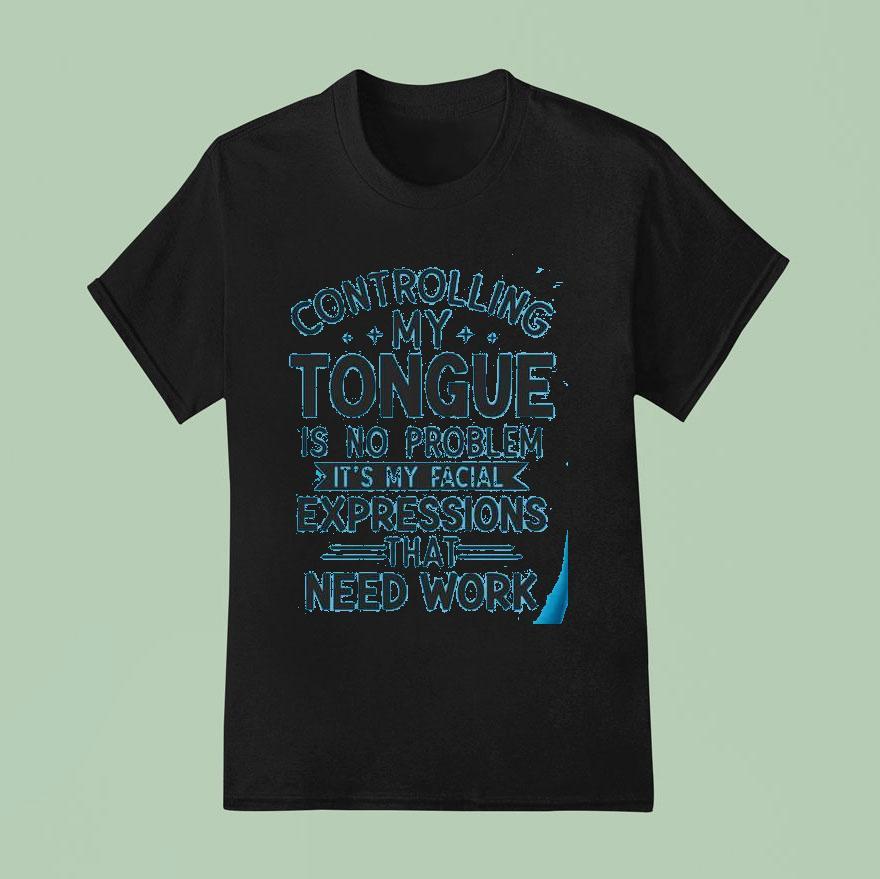 Unmatched comfort, chic look with Controlling My Tongue Is No Problem It’s My Facial Expressions That Need Work Shirt, controlling my tongue comes naturally to me, but my facial expressions tell a different story. As much as I try, I can’t seem to hide my emotions and thoughts from showing on my face. That’s why I need the “Controlling My Tongue” shirt to help me work on my expressions.