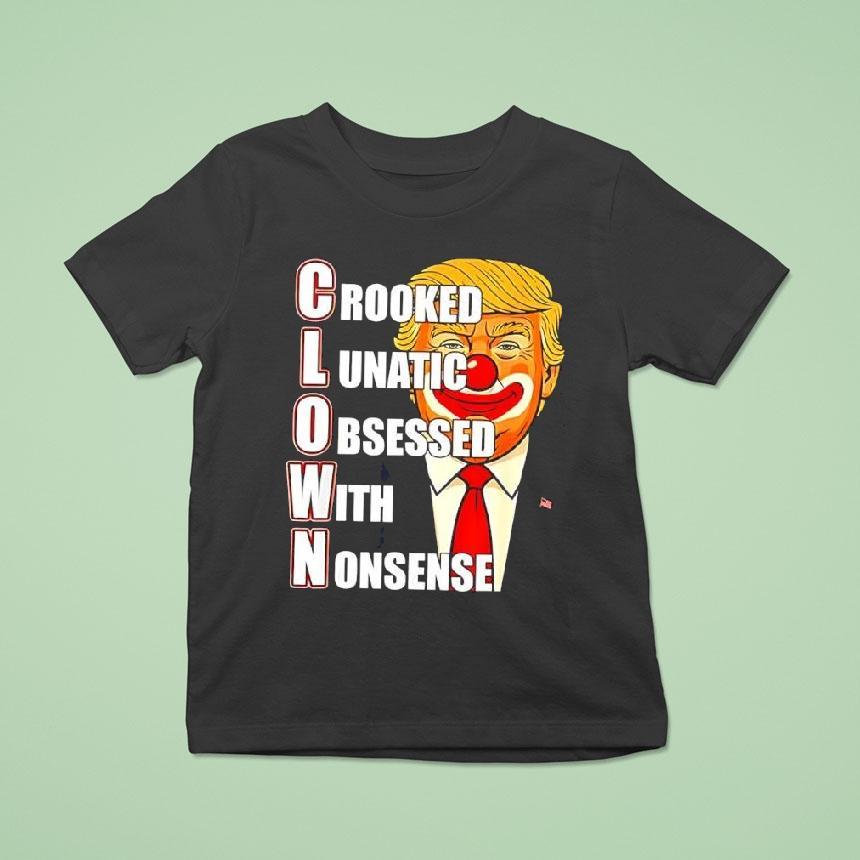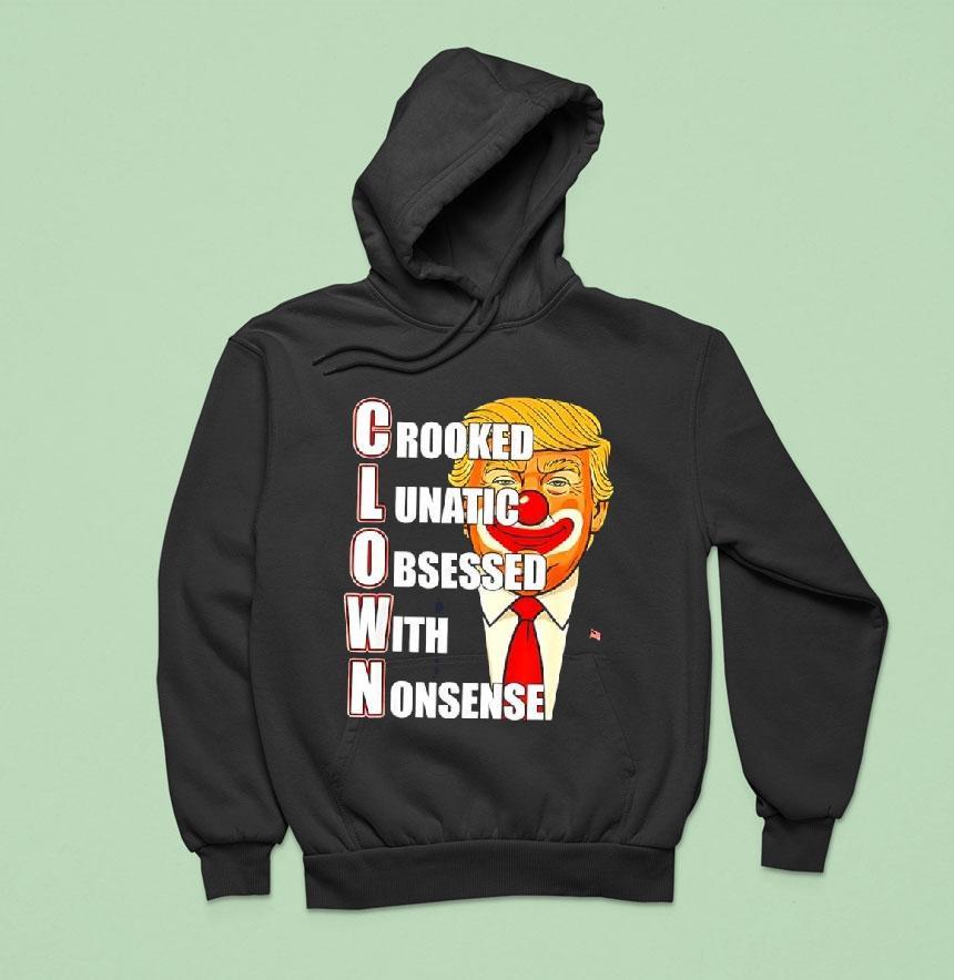 Effortless charm, everyday wear with Crooked Lunatic Obsessed With Nonsense C.l.o.w.n. Anti Donald Trump Shirt, “Step right up, ladies and gentlemen, and feast your eyes upon the most absurd and outrageous character of them all – the crooked lunatic obsessed with nonsense, also known as the C.l.o.w.n. And what better way to display your disdain for the man than with our exclusive anti-Donald Trump shirt.”
