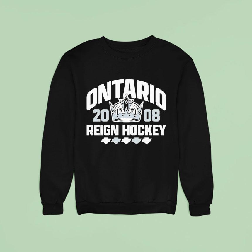 Comfort meets fashion with Crown Logo Ontario Reign Hockey 2008 Shirt, “The Ontario Reign Hockey team made waves in 2008 with their iconic Crown Logo featured on their team shirt. This symbol of strength and dominance has become a beloved emblem among fans, representing their beloved team’s reign on the ice.”