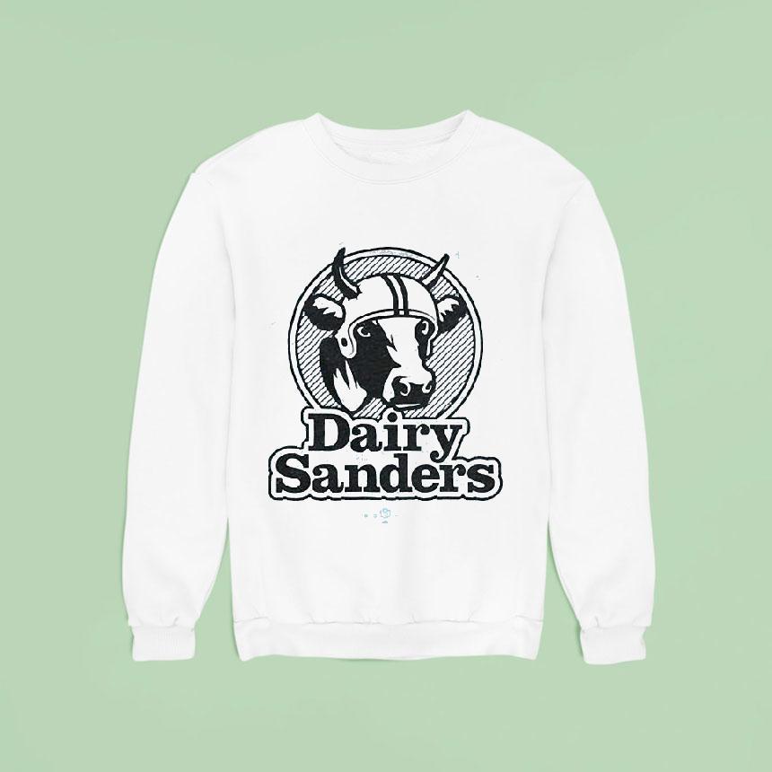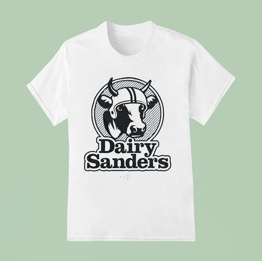 Simple yet versatile fashion with Dairy Sanders 100% Bell Cow Running Back Shirt, introducing the ultimate game day essential for any dairy-loving football fan – the Dairy Sanders 100% Bell Cow Running Back Shirt. Made with top-quality fabric and featuring the iconic Dairy Sanders logo, this shirt will have you cheering on your favorite team in style.