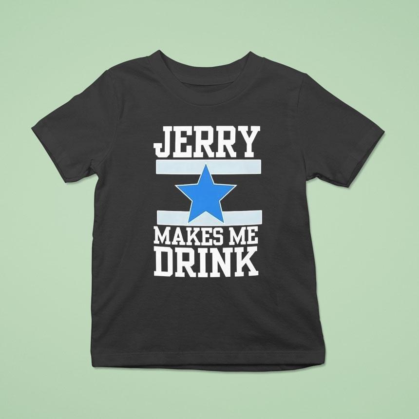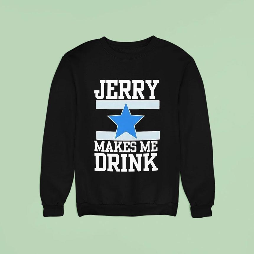 Dress it up or down with Dallas Cowboy Jerry Makes Me Drink Shirt, “As a die-hard Dallas Cowboys fan, I never thought a mere piece of clothing could define my gameday experience. But ever since I got my hands on the iconic Jerry Makes Me Drink shirt, it’s become a ritual to wear it during every game and cheers to our team’s victories.”