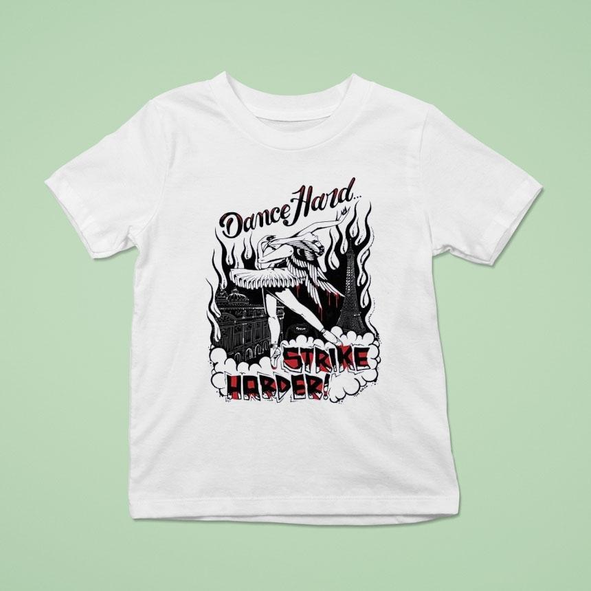 Simple style, bold impact with Dance Hard Strike Harder Shirt, get ready to look and feel fierce with our stylish Dance Hard Strike Harder Shirt. Designed for dancers who give it their all, this shirt is made to withstand the toughest moves while keeping you comfortable and stylish.