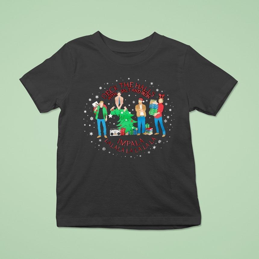 Soft, breathable, and stylish with Deck The Halls With Salt And Iron Impala Lalala Christmas Shirt, get ready to rock around the Christmas tree with the ultimate holiday attire – the Deck The Halls With Salt And Iron Impala Lalala Christmas Shirt. This festive shirt is the perfect way to show off your love for the holidays and the hit TV show, Supernatural.