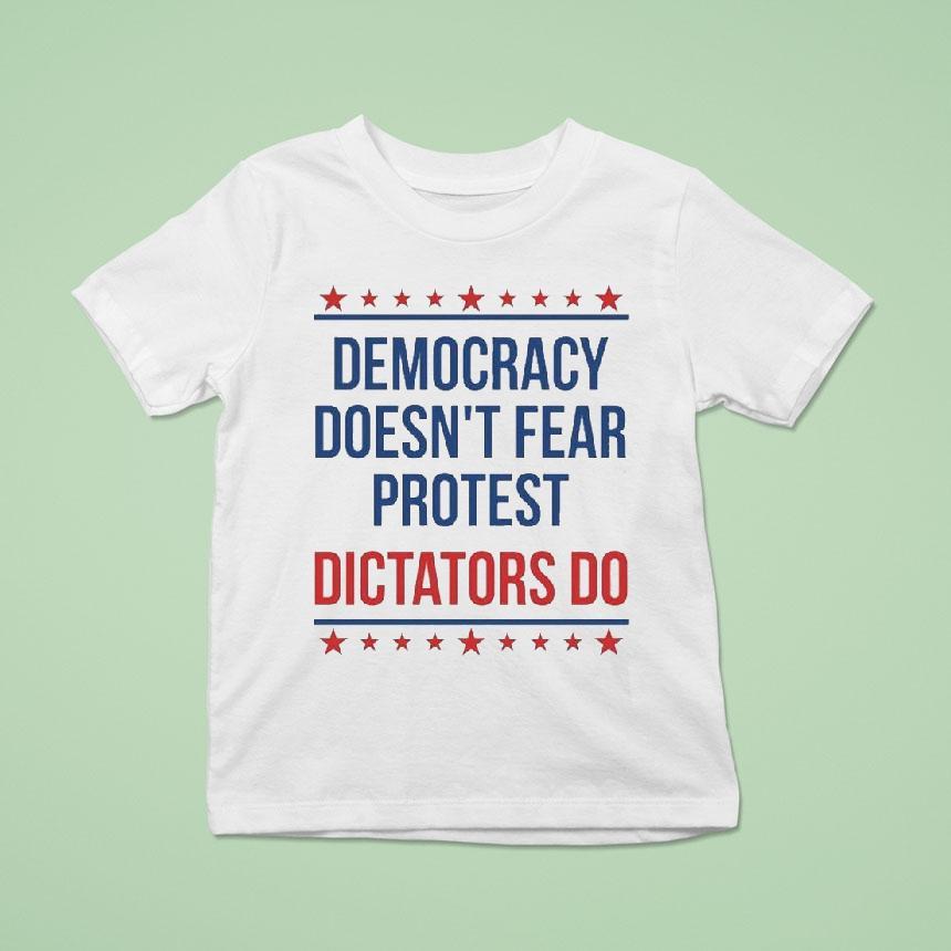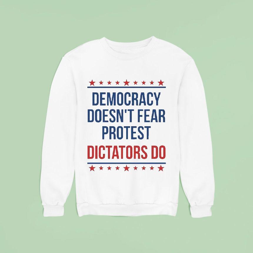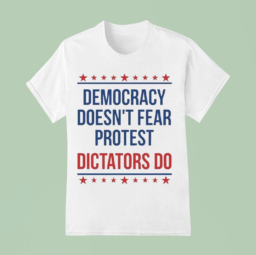 Casual sophistication, always in style with Democracy Doesn’t Fear Protest Dictators Do Shirt, are you tired of living in a society where democracy is threatened by dictator-like leaders? Show your support for free speech and protest with the Democracy Doesn’t Fear Protest, Dictators Do shirt. Let your voice be heard and stand up for your rights.