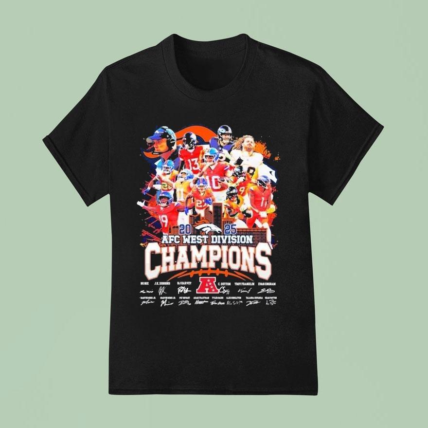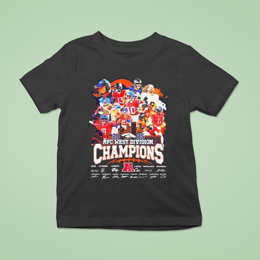 Relaxed elegance, everyday with Denver Broncos 2025 Afc West Division Champions Signatures Shirt, get ready to show off your love for the Denver Broncos in 2025 as they dominate the AFC West division and claim the championship title. Celebrate their victory with the exclusive Denver Broncos 2025 AFC West Division Champions Signatures Shirt, featuring the team’s star players’ signatures.