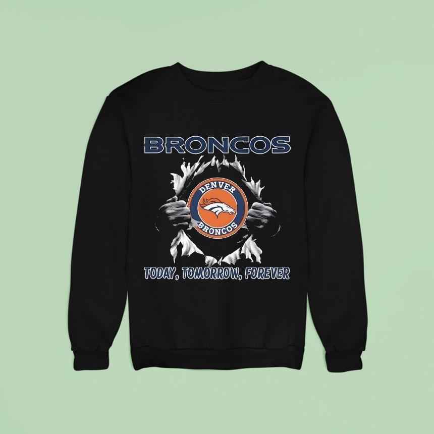 Everyday style, unmatched comfort with Denver Broncos Today Tomorrow Forever Blood Inside Shirt, denver Broncos fans, get ready to show your team support in style with the exclusive Denver Broncos Today Tomorrow Forever Blood Inside Shirt. This limited edition shirt is a must-have for any true fan, featuring the iconic Broncos logo and a powerful message that resonates with the team’s dedicated fan base.