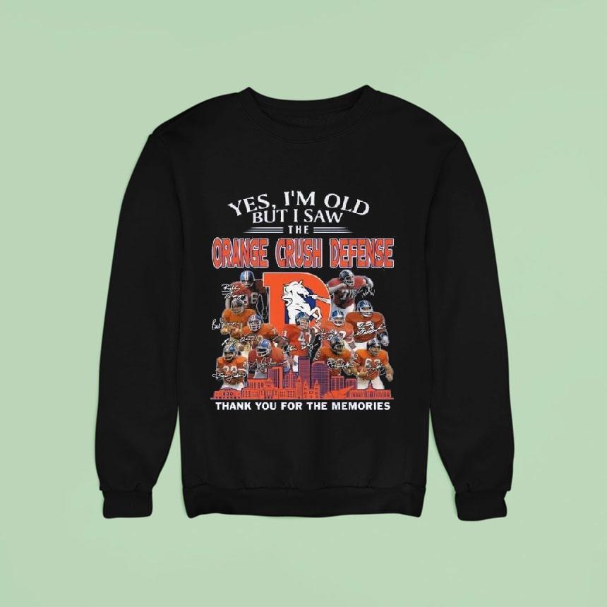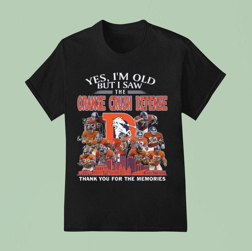 Casual cool, anytime wear with Denver Broncos Yes I’m Old But I Saw The Orange Crush Defense 2025 Thank You For The Memories Signatures Shirt, as a die-hard fan of the Denver Broncos, I may be getting older but I vividly remember witnessing the legendary Orange Crush defense dominate the field. And now, with the 2025 Thank You For The Memories Signatures Shirt, I can proudly display my love for the team and relive those unforgettable moments.