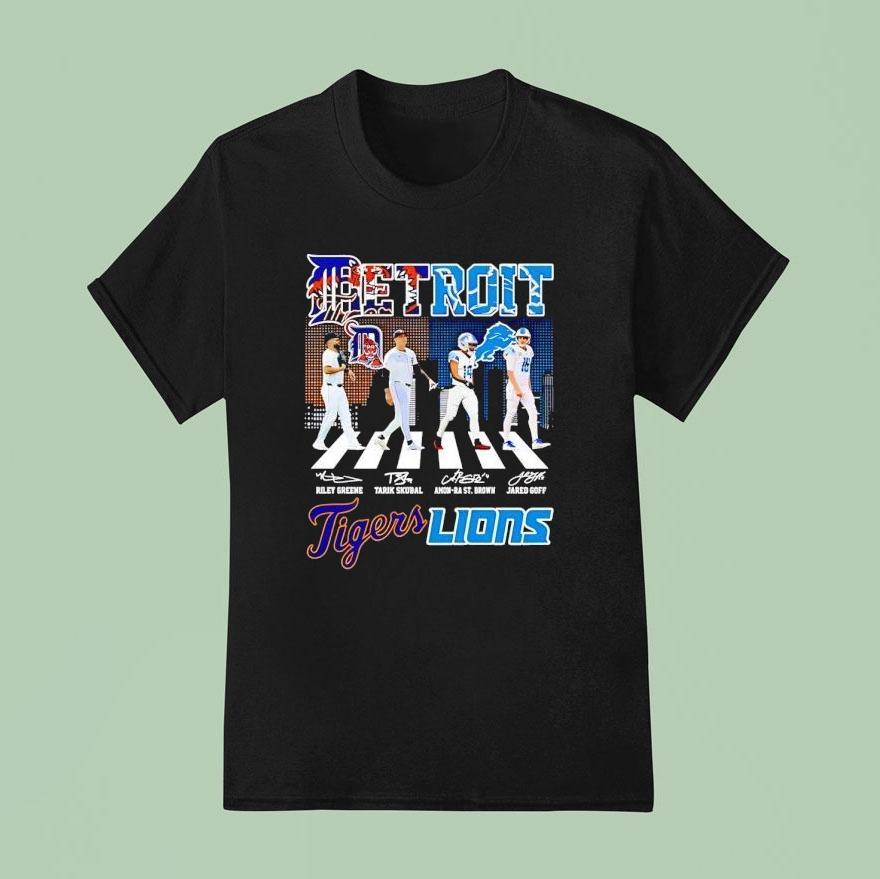 Dress it up or down with Detroit City Skyline Legends Walking Across Detroit Tigers And Detroit Lions Signatures Shirt, the Detroit city skyline has long been a symbol of strength and perseverance, and now it’s immortalized on the iconic Detroit Tigers and Detroit Lions signatures shirt. As legends walk across the city, this shirt serves as a tribute to their enduring legacy and the unbreakable spirit of Detroit.