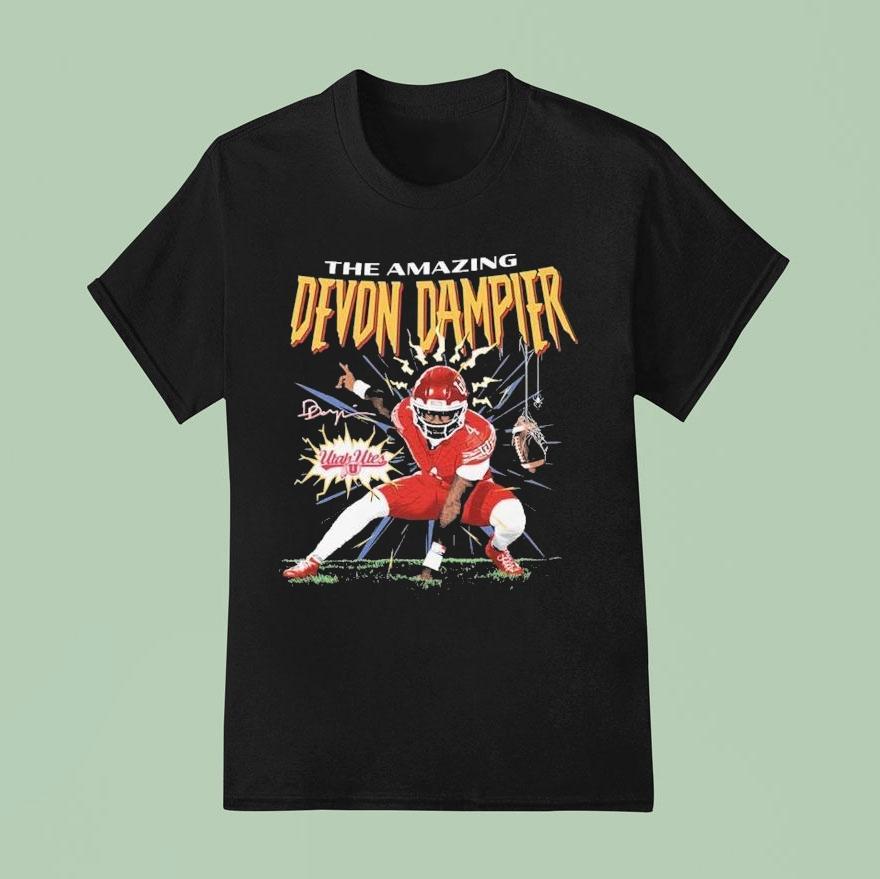 Simple style, bold impact with Devon Dampier The Amazing Utah Utes Shirt, get ready to show off your team spirit in style with the Devon Dampier Amazing Utah Utes shirt. This must-have piece for die-hard fans features a unique design and comfortable fit, making it the perfect addition to any game day outfit.