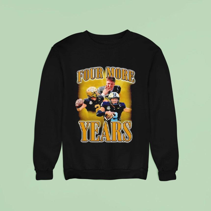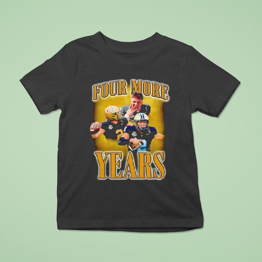 Versatile fashion, timeless appeal with Diego Pavia Four More Years Vanderbilt Commodores Quarterback Shirt, show your love for Vanderbilt Commodores Quarterback Diego Pavia with his new “Four More Years” shirt. This design is perfect for die-hard fans looking to cheer on their team and favorite player on game day. Grab yours now and show your support!