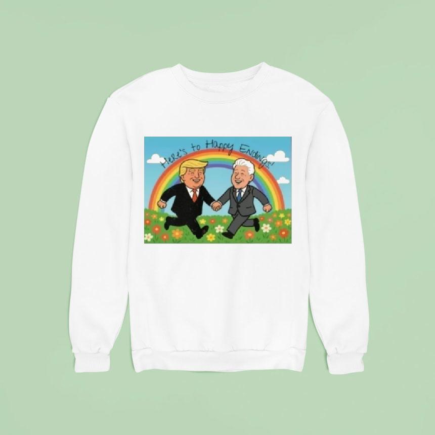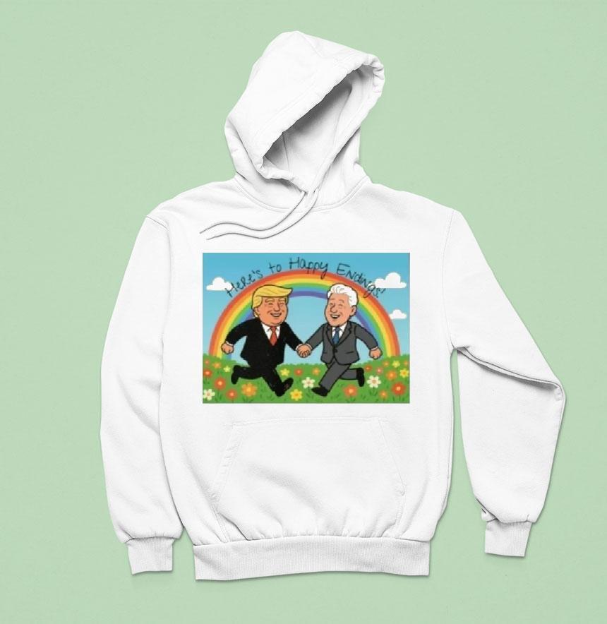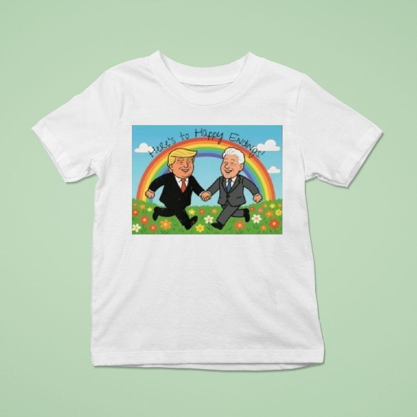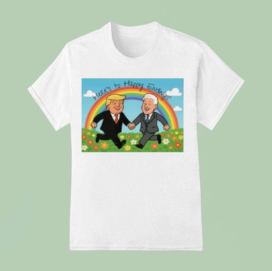 Dress it up or down with Donald Trump Bill Clinton Happy Ending Shirt, get ready to celebrate the most unlikely pairing in political history with the new Donald Trump Bill Clinton Happy Ending Shirt! This limited edition shirt pays homage to a surprising and humorous moment shared by two former presidents. Show your support for unity and a bit of humor in style.