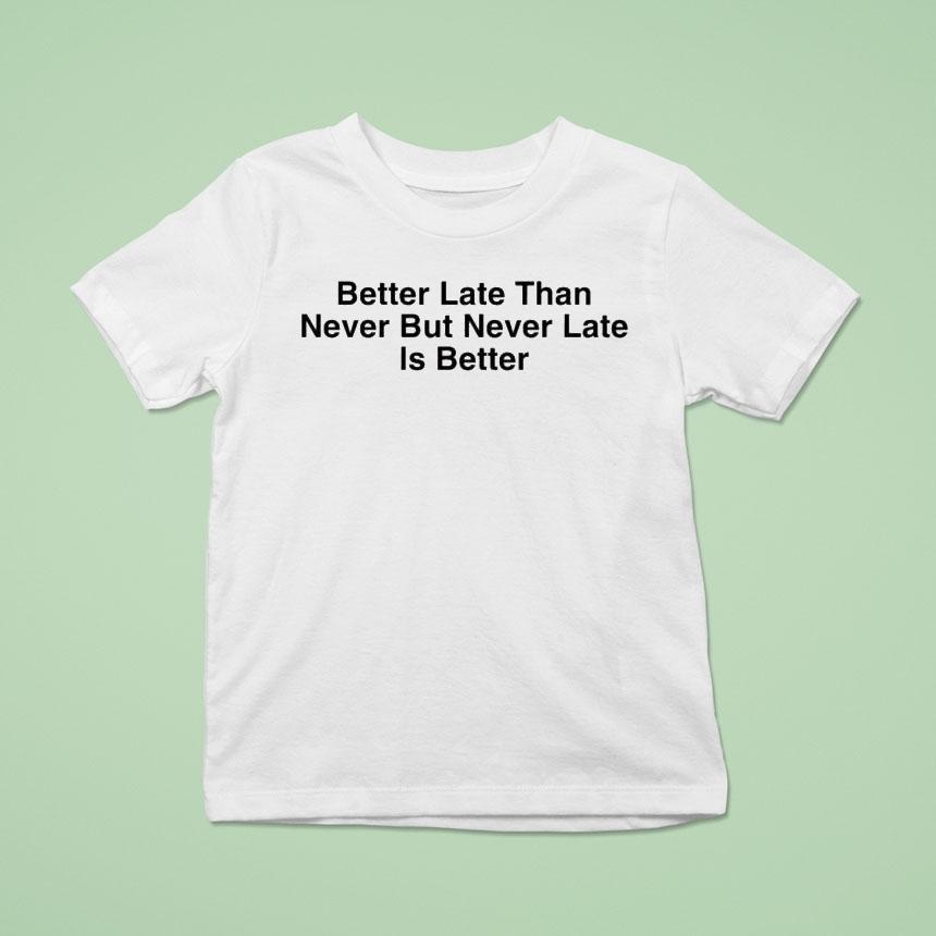 Your style, your way with Drake Better Late Than Never But Never Late Is Better Shirt, drake fans, rejoice! The wait is finally over as the highly anticipated “Better Late Than Never But Never Late Is Better” shirt has arrived. Show your love for the iconic rapper and his infamous mantra with this must-have piece of merchandise. Get yours now!