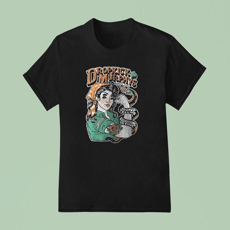 Casual chic, timeless appeal with Dropkick Murphys Europe Fall 2025 Don’t Tell Us Everything Is Fine Cities Strong Women Art Shirt, get ready to rock in Fall 2025 as the Dropkick Murphys make their way to Europe with their electrifying performances. Don’t miss out on the chance to witness their hit songs and iconic energy live. Show your support for strong women and wear their limited edition “Everything is Fine” art shirt.